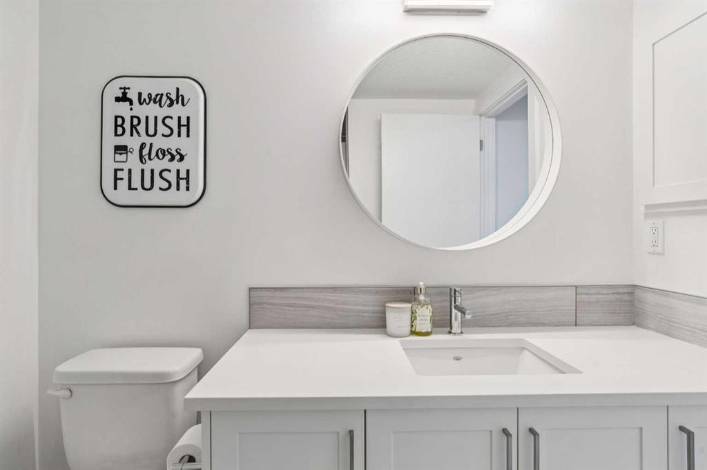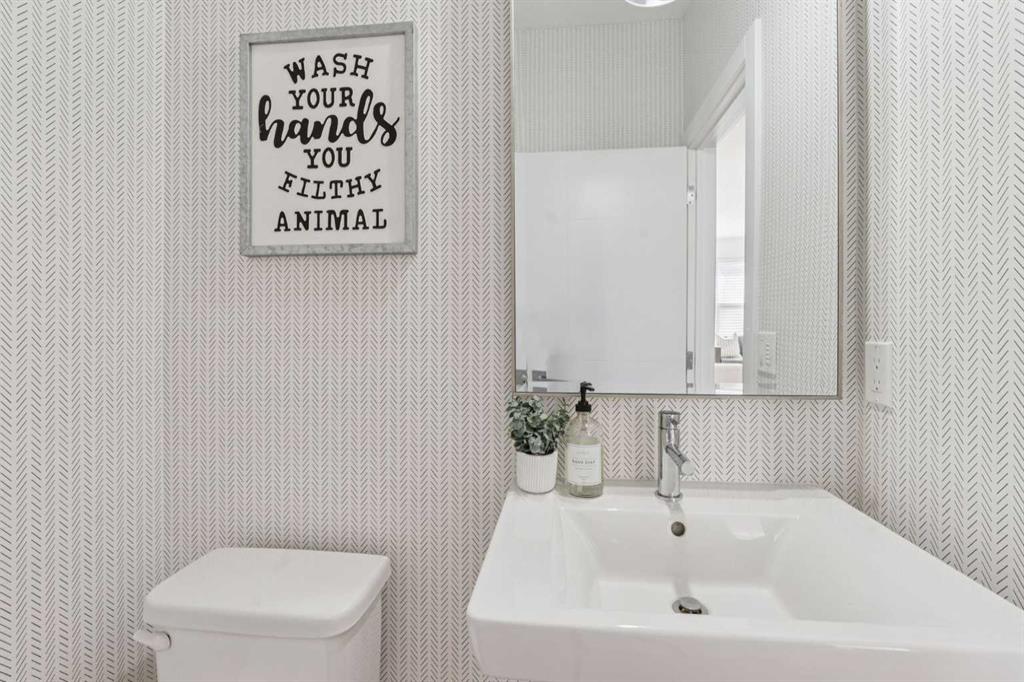 The beautifully designed main floor offers a modern OPEN-CONCEPT LAYOUT with WIDE PLANK LAMINATE FLOORING, a spacious front entry, and a bright living room centred around a cozy NATURAL GAS FIREPLACE with FLOOR-TO-CEILING STONE and a CUSTOM MANTLE.