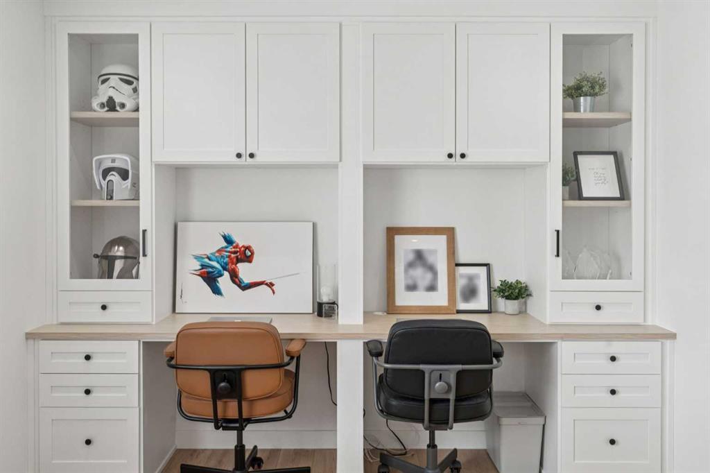 Upstairs you’ll find THREE GENEROUSLY SIZED BEDROOMS, oversized windows allowing for an abundance of natural light, and a cozy BONUS ROOM featuring CUSTOM CALIFORNIA CLOSET BUILT-IN TV MEDIA CENTRE with DUAL DESK SPACE, ideal for work or study. This level also offers convenient UPPER-LEVEL LAUNDRY. The impressive PRIMARY RETREAT features a luxurious 5-PIECE ENSUITE with DOUBLE SINKS, STAND-ALONE SOAKER TUB, and a TILED STEAM SHOWER with BUILT-IN BENCH. For those that value organization, enjoy the WALK-IN CLOSET with CLOSET ORGANIZERS for his and hers, making it easy to keep everything beautifully organized.