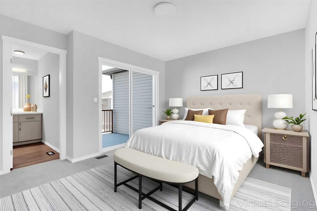 You are invited to view this Absolutely Brand New and Freehold (No Condo Fee) Townhome equipped with Solar Panels that has it all- Front Porch, very practical layout of the living, dining and kitchen as large as some detached homes, a large mudroom with inbuilt shelves and coat hooks leading to a large powder room and the best of all- A double attached Garage adding much needed convenience over the winters to come. Upstairs: Owner’s suite that consists of a large bedroom with attached balcony, a true walk-in closet and a 4 pc ensuite. There are two more Bedrooms that can all fit king sized bed, another common 4 pc bath and a must have 2nd level laundry. The home is sunlit all day due to the exposure and the evergreen finishes. There’s a fence across the back alley separating the rear lane from the homes behind, for a nice clean access to the garage. Come and check it out today!