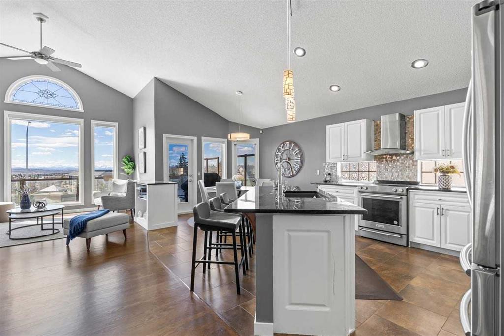 Welcome to an exceptional lake access estate home in the prestigious community of Arbour Lake, where breathtaking, unobstructed Rocky Mountain views take center stage and an elevated lifestyle follows naturally. Perfectly positioned on a premium lake access lot, this remarkable walkout bungalow blends natural beauty, exclusivity, and modern sophistication.