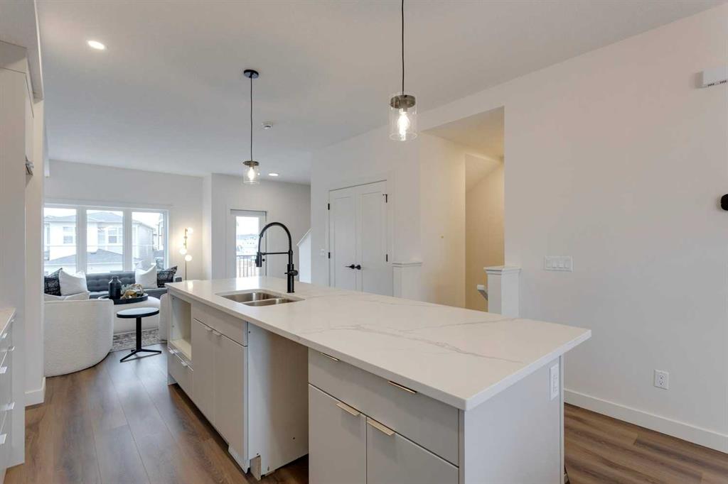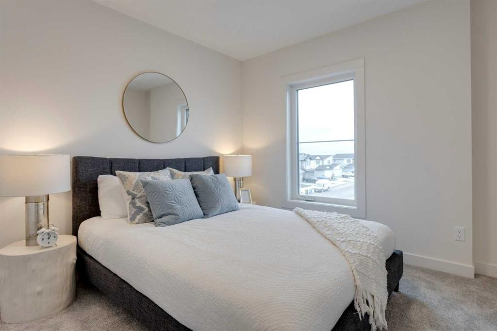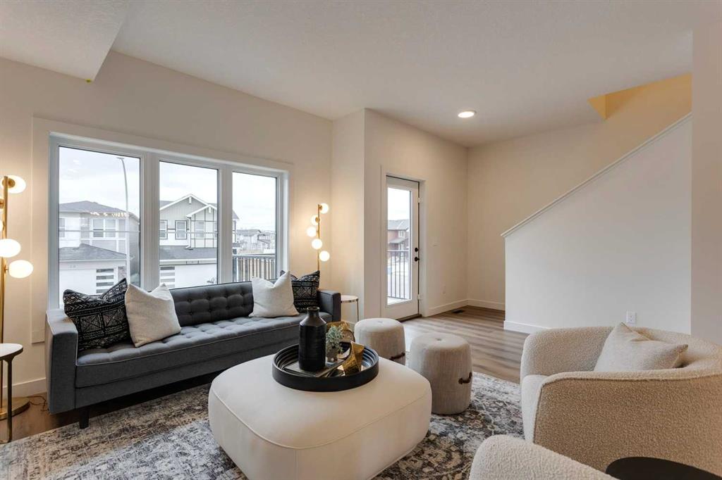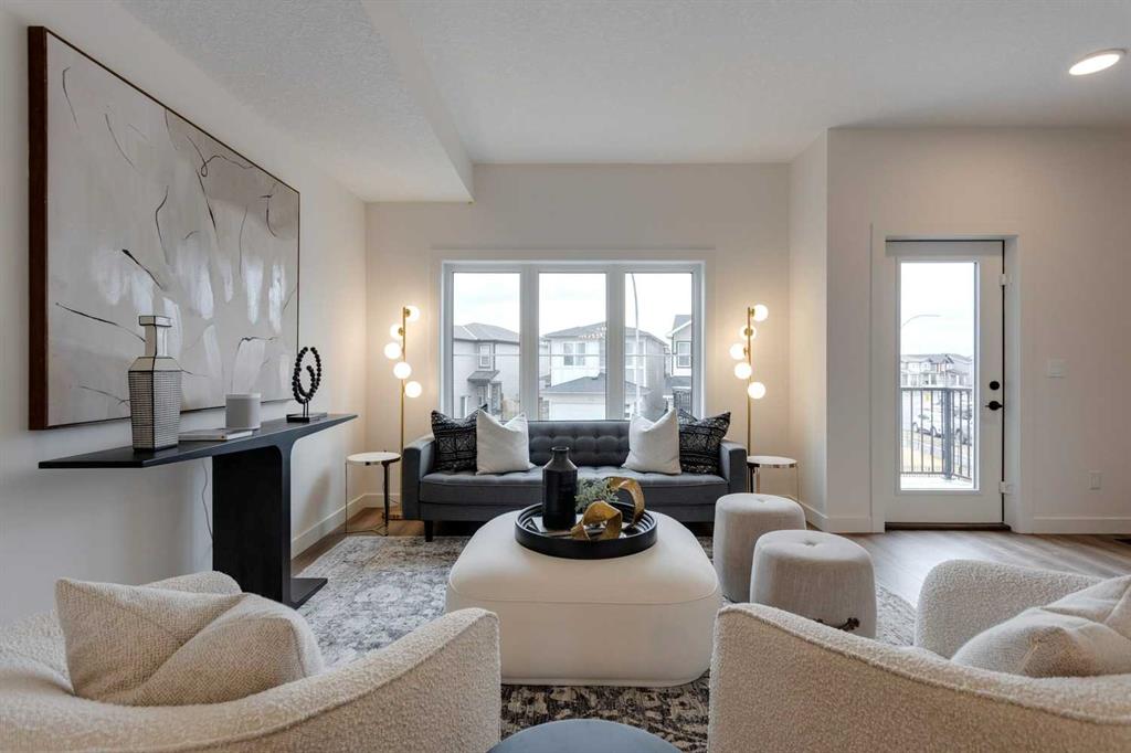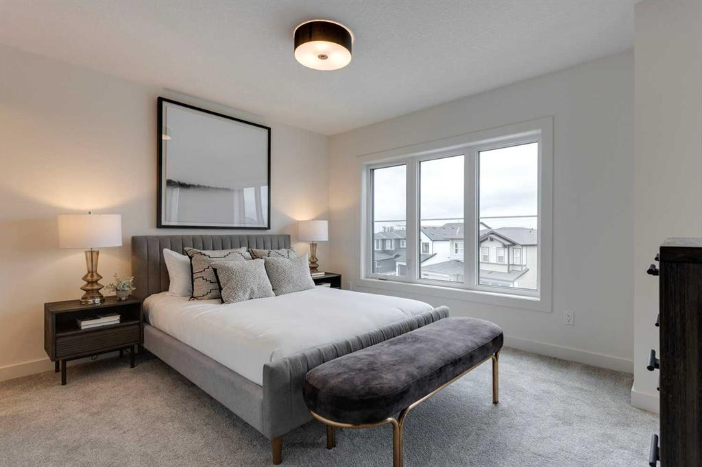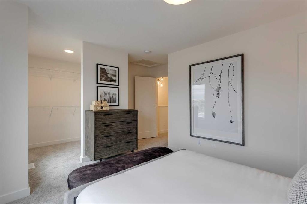Unbeatable value! Come see for yourself! The “Alden” is one of Fifth Avenue Homes’ most popular floor plans. This 3 storey, tri-plex style townhome has over 1,700 sqft of luxury living space & a double attached rear garage with direct access into the home. The entry level has a spacious mudroom, 2 pc bath, flex room, which is perfect for a home office or gym & mechanical. The main floor, with an excellent, open plan, features a huge great room with 10×8 balcony, dream kitchen highlighted by an oversized, 5-stool breakfast bar island, Quartz countertops & custom tile backsplash, adjoining dining area, walk-in study & 2 pc bath. The upper level offers 4 pc bath, laundry, spacious bedroom with walk-in closet & a gorgeous primary suite with walk-in closet, 4 pc ensuite (double basin vanity & 5’ step-in shower closet). Upgraded plumbing & lighting fixtures throughout! Fifth Avenue Homes is well known for above standard finishings & attention to detail both in design & workmanship. This listing has just been completed & is ready for occupancy – pick your possession & move right in. GST included in sale price. Low condo fees of $299/month for landscaping, snow & trash removal. The Cottages are situated in the heart of Belvedere & just minutes to all the amenities in East Hills Plaza (Costco, movie theatre, shops & restaurants), close to future CBE elementary school site & 10 minutes to downtown on the Max Purple transit. Belvedere offers a wonderful family lifestyle with a neighborhood activity centre, parks, natural wetlands and pathways. Book a showing with your Realtor today!