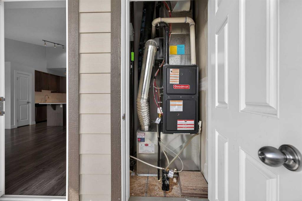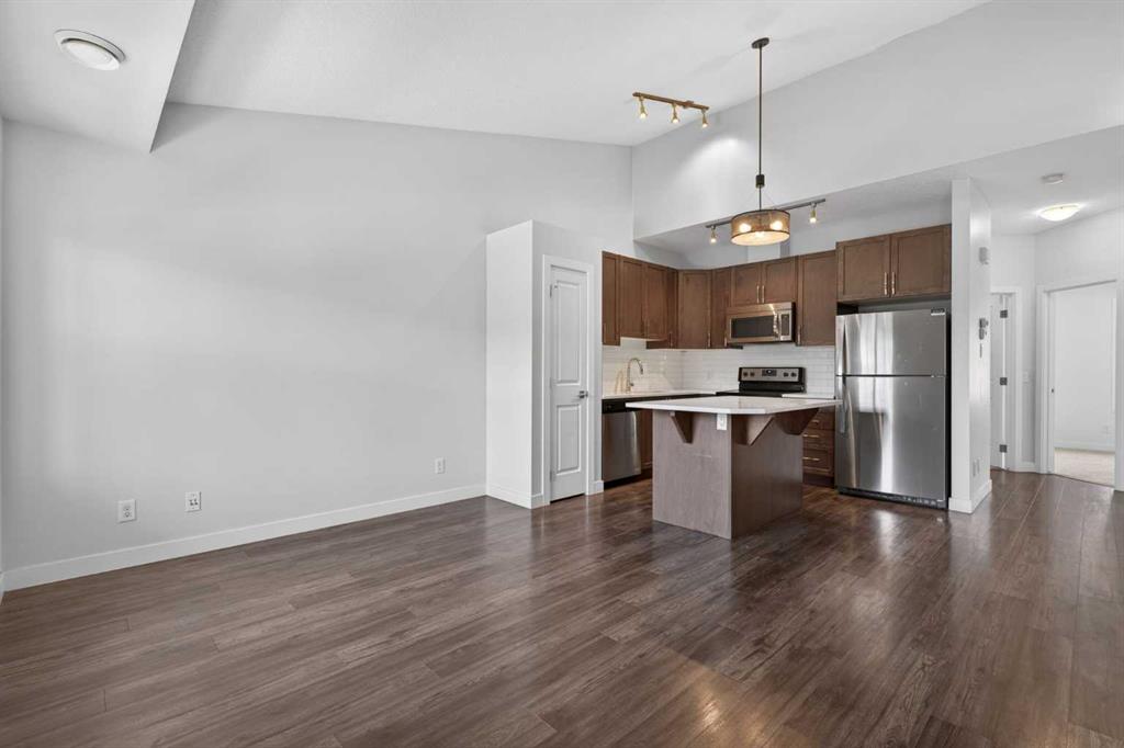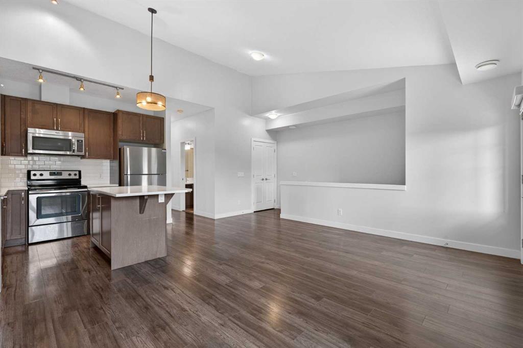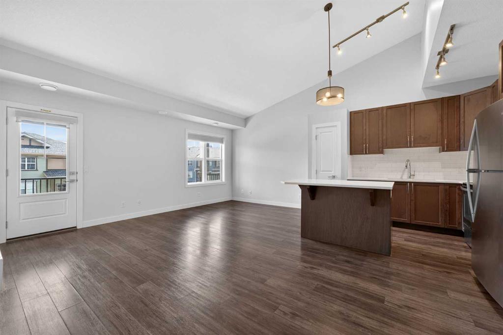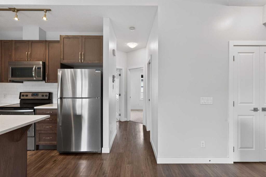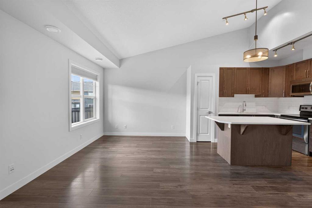 Welcome to this bright and airy 2-bedroom, 1-bathroom townhouse located in the heart of the highly sought-after community of Evanston. This home features a seamless open-concept layout and soaring vaulted ceilings that enhance the sense of space and natural light, perfectly complemented by a modern kitchen boasting high-quality appliances. Step outside to your private balcony for a peaceful view of the quiet, beautifully landscaped inner courtyard, or head downstairs to enjoy the convenience of covered parking with your own single car garage. Situated in an exceptionally well-managed complex with the added benefit of low condo fees, this property offers incredible value and peace of mind. Just minutes from local shopping, schools, and transit, this turnkey home is an unbeatable opportunity for first-time buyers and investors. View full media package of this home: https://listedmedia.aryeo.com/listings/019dc550-e3d0-7311-b66c-8452fc9bbfa2/download-center#files