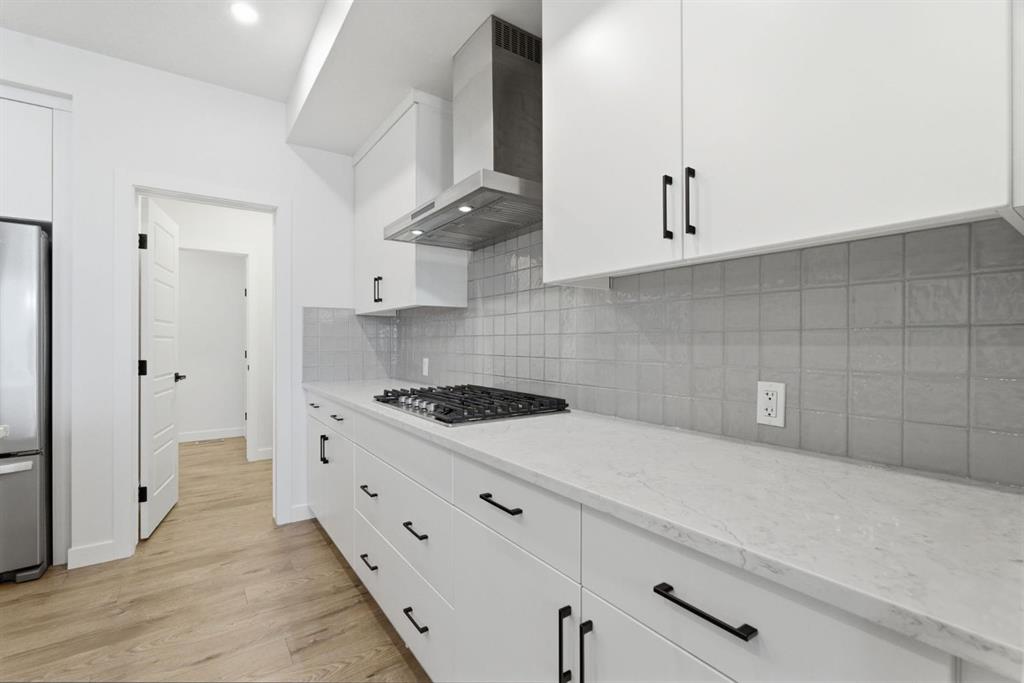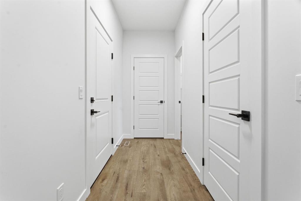 The bright and open main floor features 9’ knockdown ceilings and durable luxury vinyl plank flooring throughout, creating a seamless and contemporary feel. The spacious living room is centred around a sleek electric fireplace, providing a cozy focal point for relaxing or entertaining. The kitchen is truly the heart of the home, showcasing quartz countertops, undermount sinks, a large central island, stainless steel appliances, and a convenient walk-through pantry offering plenty of storage and easy access. The dining area is filled with natural light and opens to the backyard, creating an ideal space for everyday living. Upstairs, you’ll find a thoughtfully designed upper level featuring four generously sized bedrooms and two full bathrooms, making it ideal for growing families. The primary suite offers a private retreat with a well-appointed ensuite and ample closet space. A standout feature of the upper level is the vaulted bonus room—perfect for a family lounge, playroom, or home office. Convenient upper-level laundry adds to the home’s practical layout. The full unfinished basement provides endless potential for future development with a side entry way and rough in plumbing, allowing you to customize the space to suit your needs.