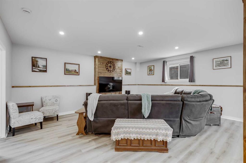 The professionally developed basement (completed in 2024) is sure to impress. With 9-foot ceilings, large windows, vinyl flooring, wood-capped ledges, and a stunning rustic wood feature wall, the family room is both stylish and functional. This level also includes a fourth bedroom, a full bathroom, and a laundry area with a new dryer and a water filtration system.
