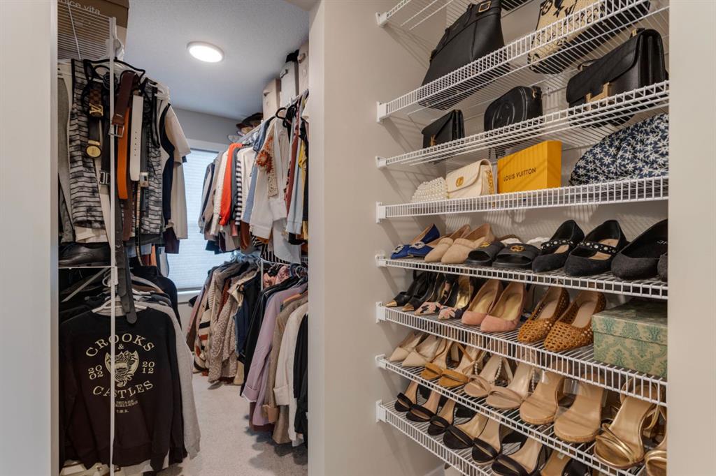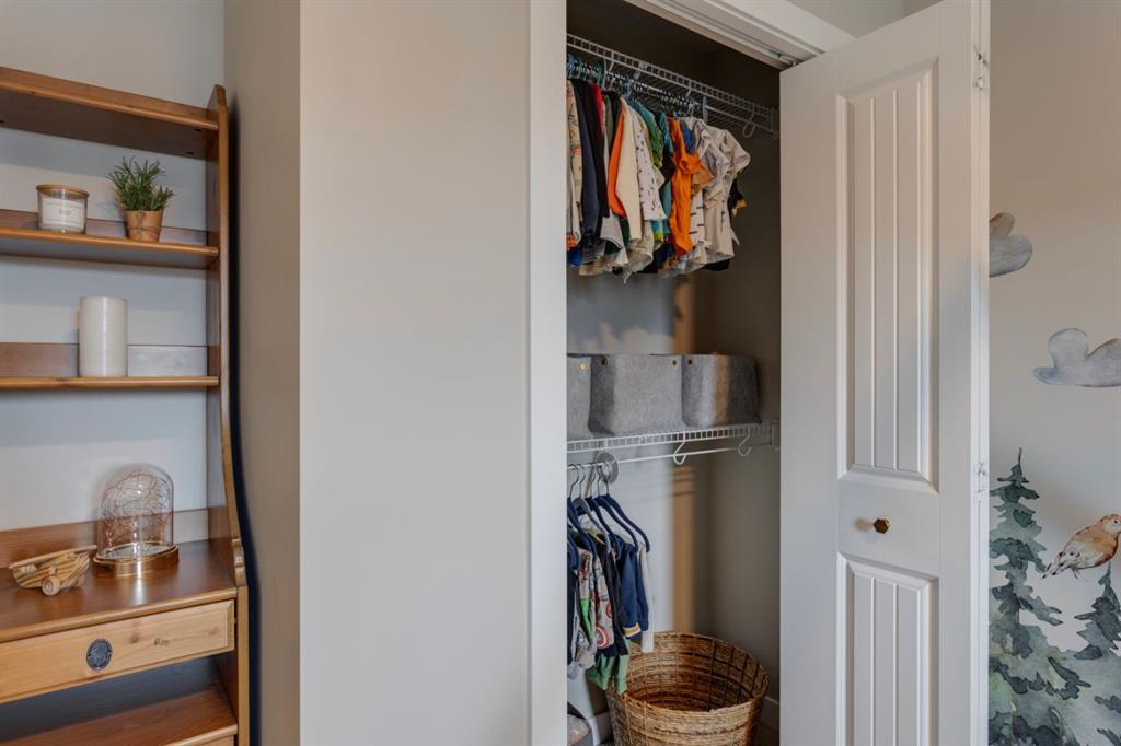 Two additional bedrooms with upgraded closet organization and a full bath complete the upper level.