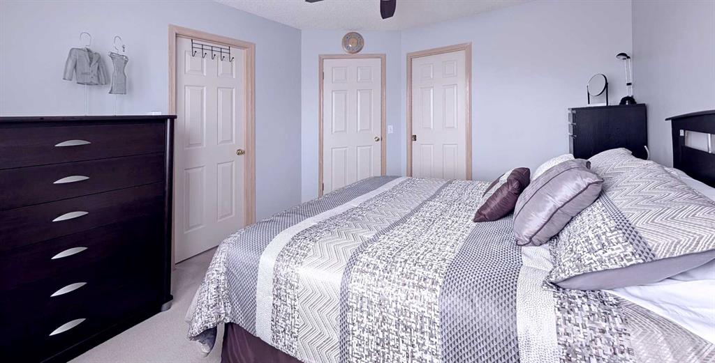 This beautifully maintained 3-bedroom, 2-bath townhouse in Shawnessy is move-in ready and offers exceptional value in a quiet, well-kept complex with no rear neighbors and serene views of green space. Located just minutes from playgrounds, schools, shopping, parks, restaurants, and transit—including the C-Train—this home combines convenience with tranquility. The spacious entrance opens into a bright living room with soaring 9′ ceilings, large windows that flood the space with natural light, and a cozy tile-surround gas fireplace with a mantel. A few steps up, the dining area overlooks the private backyard and connects to a well-appointed kitchen featuring newer stainless steel appliances, ample cabinetry, and direct access to a generous deck surrounded by mature trees for added privacy. The fenced deck includes a built-in bench and BBQ area, perfect for entertaining. Upstairs, you’ll find three comfortable bedrooms including a primary suite with a large walk-in closet, a full bathroom, and a versatile nook ideal for a small office or reading space. The basement offers plenty of storage along with laundry and utility rooms. Recent upgrades include new kitchen appliances, lighting fixtures, fresh paint throughout, newer windows, and new patio doors. The complex itself has seen improvements such as a new roof, updated exterior siding, and new porches. This unit comes with two parking stalls—one on your private driveway and another conveniently located across from the unit. With its exceptional cleanliness, thoughtful updates, and prime location, this home is a rare find you won’t want to miss.