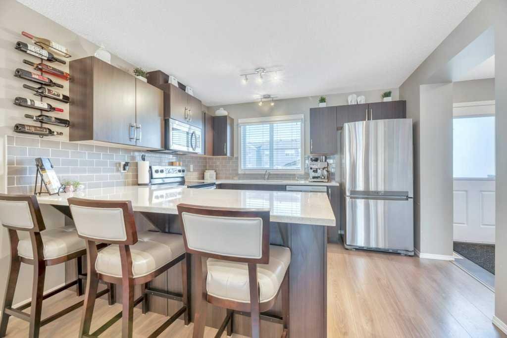 Welcome to the home that just feels right — a beautifully balanced 3-bedroom, 2.5-bathroom space where modern design and everyday comfort come together effortlessly. The open-concept main floor sets the tone: airy, inviting, and made for connection. The living room flows seamlessly into the dining area, featuring warm and durable Haro laminate flooring, and continues into a contemporary kitchen with stainless steel appliances, quartz countertops, and an eat-up breakfast bar — ideal for easy mornings or lively evenings.