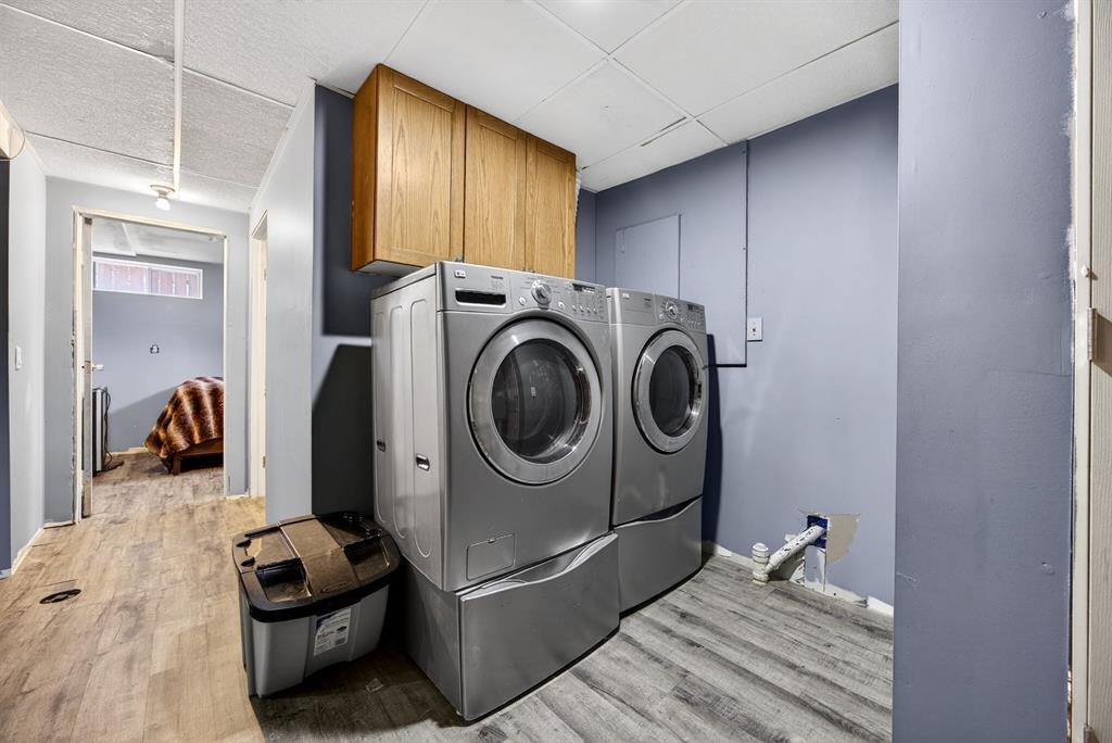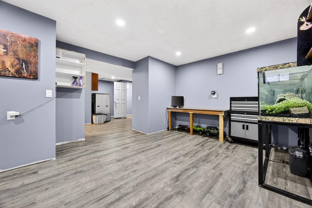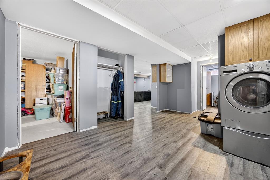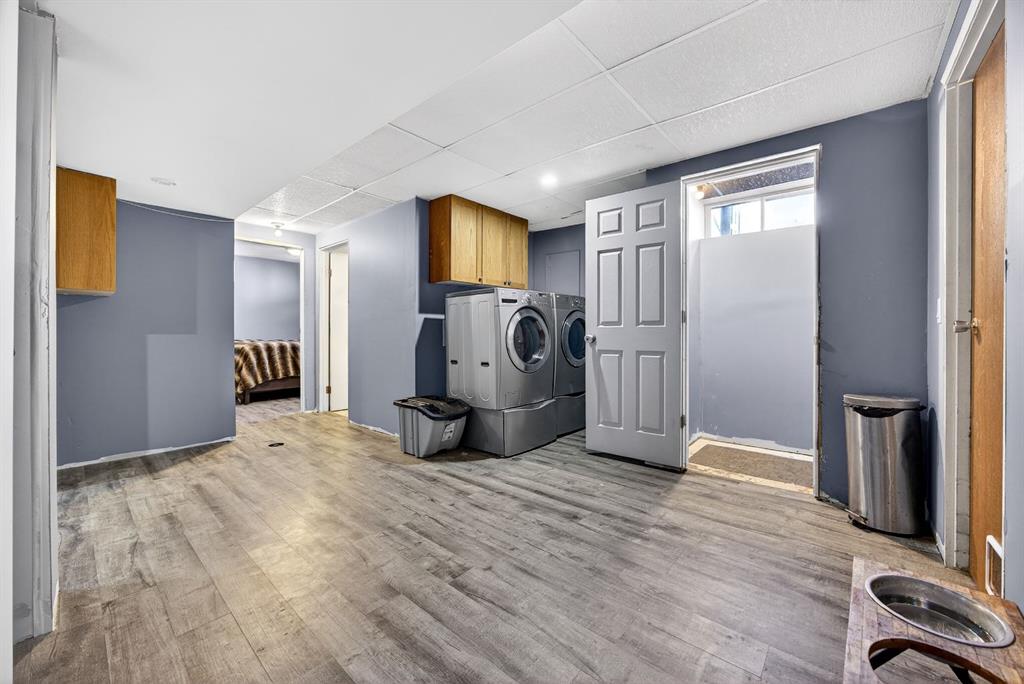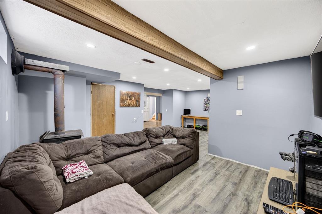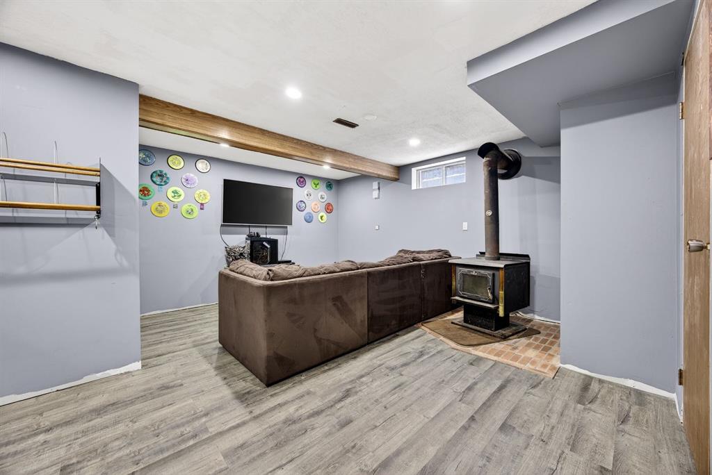The partially developed basement adds excellent additional living space, featuring another bedroom, a large family room, multiple storage areas, a second laundry setup, a wood-burning stove, and a partially finished bathroom—offering great potential for further customization.