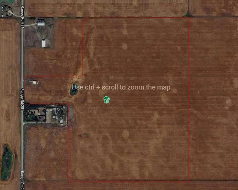 Here are 120 Acres of farmland that are currently zoned AG-GEN but are strategically and conveniently located for someone with a longer term vision for the area and property. The parcel sits just outside the current Conrich Area Structure Plan Boundary and about 3.5km from the CN Calgary Logistics Park. It is only 5km from Conrich, 6km from Chestermere and 8.5km from Calgary. The property currently has a 36’x48’ shop with a concrete floor that is about 10-15 years old and the land is leasing for farming year to year with rotational crops. A treated water line has been laid on the west side of the road while power and gas is on both sides of the property. Access is directly off of Range Road 281. Come and explore for yourself today.