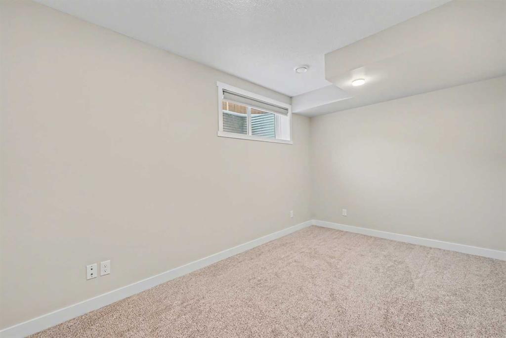 The fully finished basement adds exceptional versatility with a large recreation area, fourth bedroom, and full bathroom, making it perfect for a media room, home office, or guest suite. The backyard is fully landscaped with access to the oversized single car garage accessed from the paved lane. Enjoy outdoor living with a private outdoor space ideal for summer BBQs and relaxation, along with convenient parking options. This home is surrounded by parks, playgrounds, pathways, ponds, and nearby shopping, with quick access to Stoney Trail, Deerfoot Trail, CrossIron Mills, and the airport.