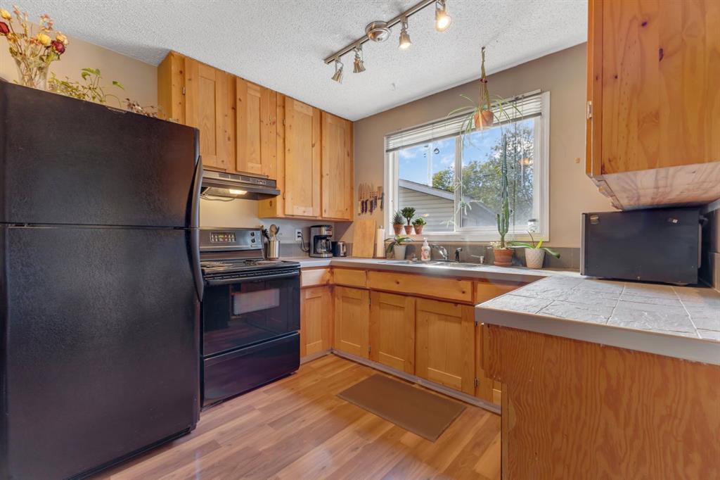 Welcome home! This updated duplex is what you have been looking for! An incredible opportunity for first time home buyers, investors, or families! A very well-kept home, lots of love was poured into this place. The ROOF was entirely replaced in 2023, as well as the garage roof. A BRAND NEW hot water tank installed in September of 2025. NEW PAINT in the bedrooms upstairs! Move-in ready, no extra work required, AND NO CONDO FEES! A seamless layout that works for everyone- step inside to the cozy, spacious living room with LARGE WINDOWS that overlook the front yard. Ample cupboard and counter space in the kitchen, and a window that overlooks the gorgeous landscaped backyard makes doing dishes easy! A half bathroom on the main floor as well!. Upstairs offers 3 full sized bedrooms (newly painted) and a 4 piece bathroom. The fully developed basement makes for an excellent bonus living space, with a “secret door” that leads to the LARGE storage room and laundry room. The back door to the yard is tucked behind the kitchen, with easy accessibility to the basement. Whether you want to enjoy your morning coffee by your pond, entertain friends & family in your WEST facing backyard, enjoy the garden, or have a fire in the fire pit- this backyard is truly a highlight of the property. With back alley access, no neighbours behind, and a detached garage- what more can you ask for! Additional space beside the garage can be used for extra parking or a spot to park the trailer! This large PIE-SHAPE LOT will check off all the boxes! Located close to PARKS, playgrounds, SCHOOLS, Elliston park, minutes from COSTCO and all the amenities you need! You won’t want to miss out on the chance to call this HOME!