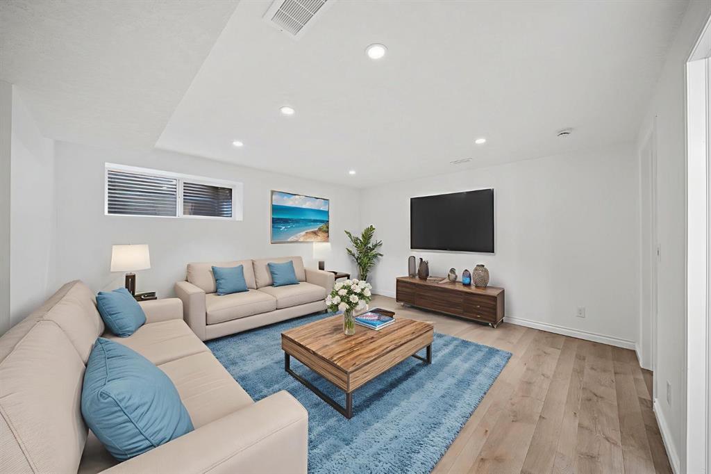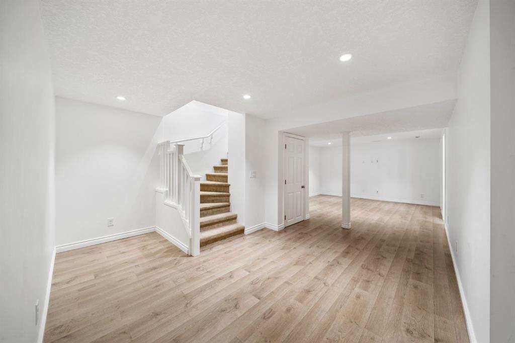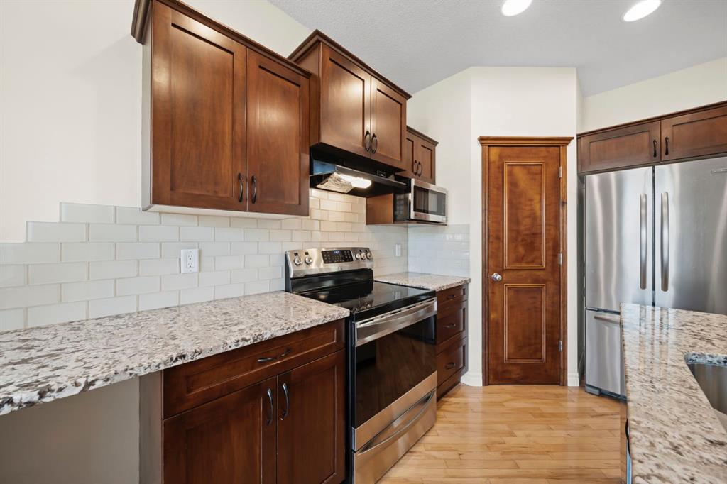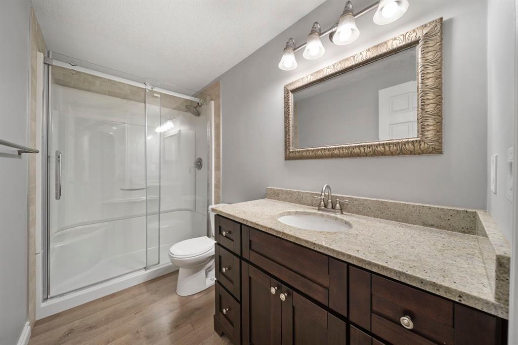 BACK ON MARKET DUE TO FINANCING – Immaculate family home in Village of Prestwick in McKenzie Towne with 3+1 bedrooms, 3.5 baths and OVER 2,500 SQ.FT. OF LIVING SPACE including the PROFESSIONALLY DEVELOPED BASEMENT.(**CLICK on 3D ICON and MOVIE REEL ICON ABOVE FOR VIRTUAL TOURS**) The main floor features an open concept design with soaring 9 foot ceilings, spacious office/flex room, hardwood floors and a well appointed kitchen offering stained maple cabinetry, striking granite countertops, sleek subway tile backsplash, a stylish granite waterfall counter edge, along with stainless steel appliances. Upstairs the Master retreat features a walk-in closet and spa-like ensuite with a soaker tub and stand-up shower. This is complemented by two more bright bedrooms and a full bath. Recent upgrades include a brand-new roof on the house and garage, fresh paint throughout, and a PROFESSIONALLY FINISHED BASEMENT WITH A REC ROOM, BEDROOM AND 3-PIECE BATH with glass shower. Large windows, excellent finishing, and custom lighting make this lower level feel bright and airy. Spend summer/fall afternoons and evenings on the expansive back deck, perfect for BBQs and entertaining in the tastefully landscaped back yard….or start your day with a coffee in the morning sun on the refinished composite front porch. The oversized garage allows for a tool work space and plenty of extra storage as it conveniently backs onto a spacious paved alley. Located on a Quiet cul-de-sac, close to schools, parks, and shopping just steps from the charming High Street of Prestwick Village or the amenities of 130th avenue stores. Completely TURN KEY and move-in ready! You will not beat this value in South Calgary.