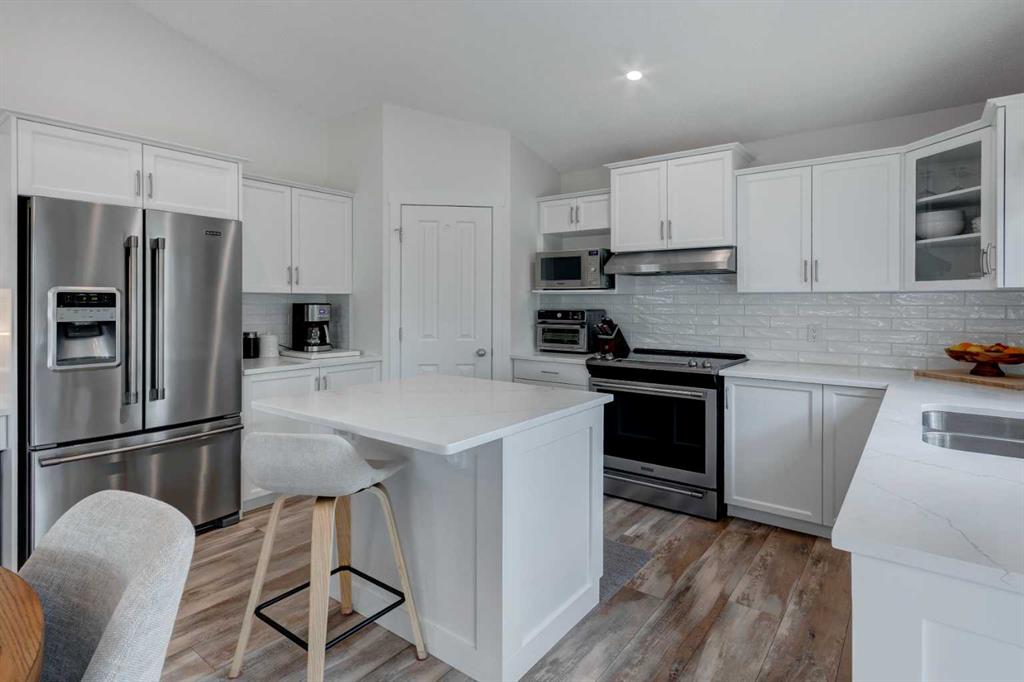 Pride of Ownership at Its Finest! Welcome to this stunning custom home (3 bedrooms and 3 bathrooms) offering over 2800 total square footage of beautifully developed living space, including a fully finished basement. Thoughtfully designed for comfort, style, and functionality, this home has been meticulously maintained and extensively updated with premium features throughout. The spacious entryway leads to a convenient laundry room and access to the double attached garage. Just a few steps up, the main living area is flooded with natural light thanks to vaulted ceilings & oversized windows. A striking 2-sided fireplace adds warmth and character to the open-concept layout. The updated kitchen boasts generous cabinetry, abundant counter space, and stainless steel appliances and fixtures. From the dining area, step out onto the large deck—ideal for outdoor entertaining or quiet relaxation. This level also includes a generously sized bedroom and a 4-piece bathroom. Upstairs, you’ll find the luxurious large primary bedroom featuring a huge walk-in closet and a spa-inspired 4 pc ensuite with a corner tub and walk-in shower. The basement is fully finished with large windows, offering a bright and comfortable living area year-round. It includes a large recreation room, bedroom and a 4-piece bathroom. Step outside to a serene, fully fenced backyard featuring a deck, dog run. The location is quiet & backing onto a green space/walking path. Notable upgrades include: Shingles (2017), Hot Water Tank (2021), Updated Kitchen, Paint, Countertops, Appliances, Light fixtures (2023) Additional features: Central air conditioning, central vacuum system and Sump Pump. Close to Shopping, Restaurants, Local Schools and a quick exit to 17th Avenue. Don’t miss your chance to own this exceptional home that perfectly combines comfort, style, and practicality. Book your showing today—and be sure to explore the virtual tour!