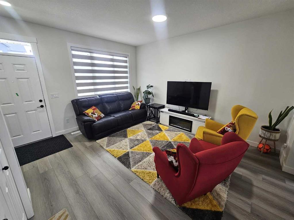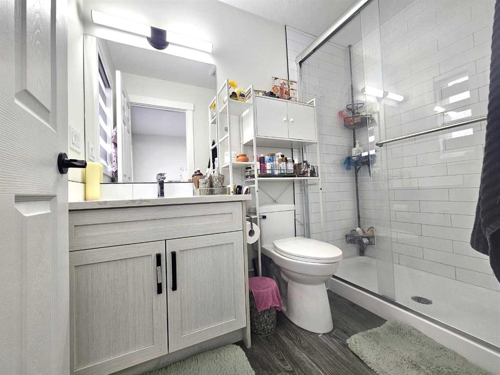 Welcome to this absolutely beautiful 2024 built home by Homes By Creation. , This home is ideal for young first time buyer family and if downsizing. Great location in this fast growing Iron landing community in Crossfield, just 10 minutes drive from Airdrie and 25mins to Calgary Airport. If you are looking for the quiet, peaceful community to start and grow your family, this is the right place for you. This home is tastefully built in 2024, lots of windows for natural light, open concept, main floor laundry, and a side entrance to the unfinished basement awaiting your finishing touch or develop for rental income. Features, Quartz counters throughout, Vinyl Plank flooring, Comfortable master bedroom with 4 piece Ensuite, addition good size bedrooms for the young ones and or other family members. Walking distance to schools, bike path, playground area. This comes on Market just in time for the little ones to enjoy the splash waterpark minutes away in the summer. Call your favorite agent today and book a showing to check this out.