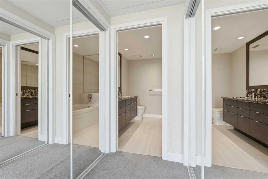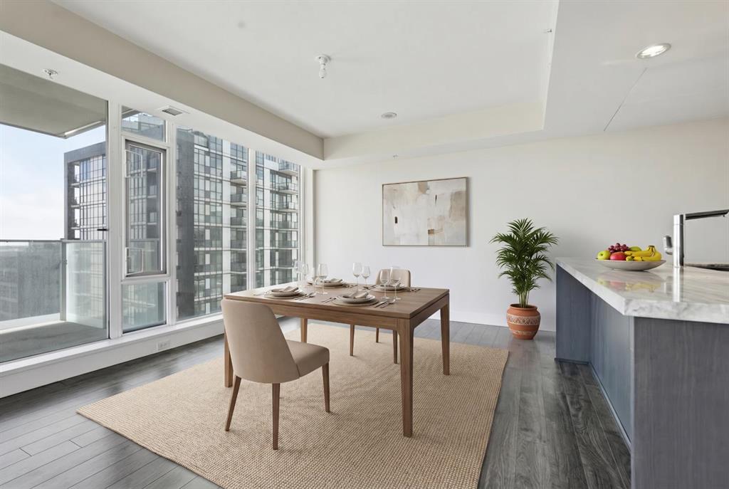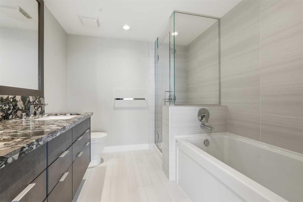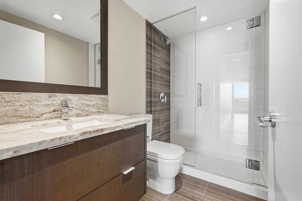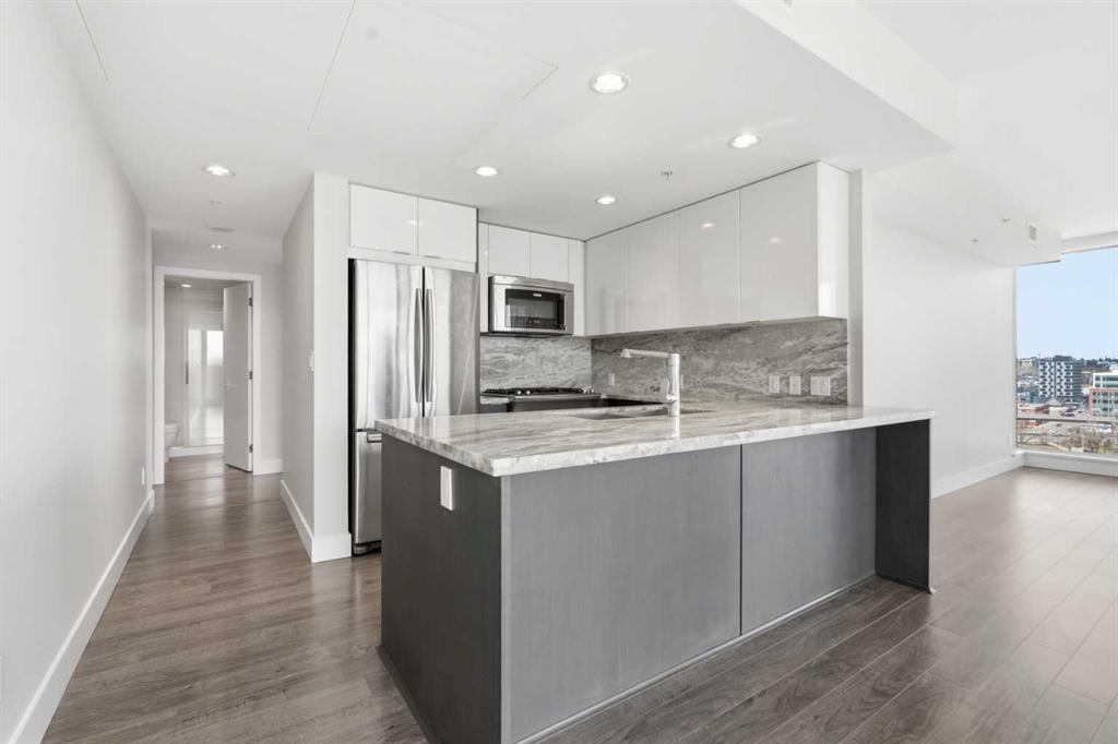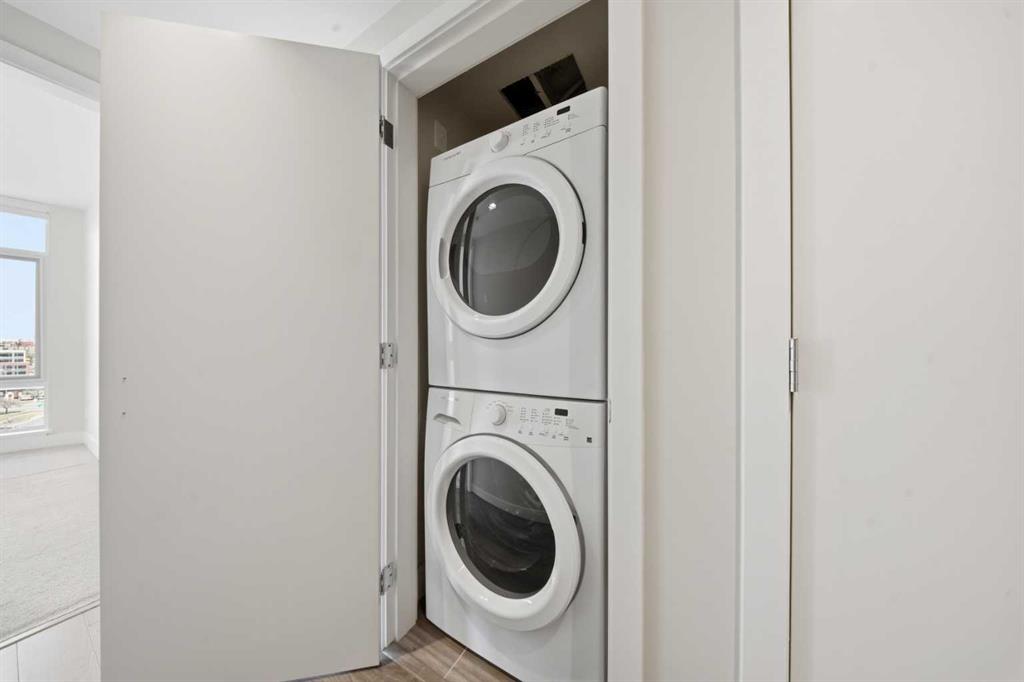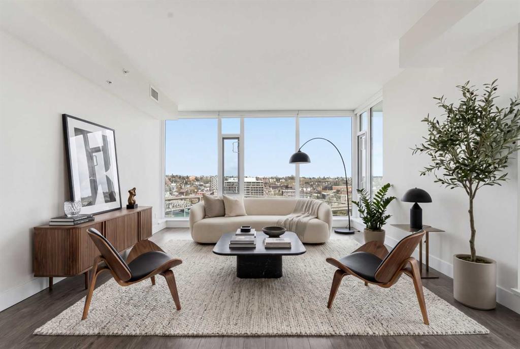 Welcome to Evolution in Calgary’s vibrant East Village. This well-appointed 2 bed, 2 bath + den unit which offers 1,097 sq. ft. of thoughtfully designed living space, featuring unobstructed NE river views from the 12th floor. Enjoy modern concrete construction, floor-to-ceiling windows, and a bright, open-concept layout that balances downtown convenience without compromising on space. The home showcases 2 spacious bedrooms, including a primary retreat with dual vanities and a luxurious glass shower and deep soaker tub. The versatile den is perfect for a home office or additional storage. Indoor and outdoor living spaces are ideal for entertaining, complemented by ample in-suite storage and laundry. Additional highlights include secure underground tandem parking, separate storage locker, and full building concierge services. Residents enjoy premium amenities such as a fitness centre, sauna/steam room, owners’ lounge, and a landscaped courtyard with BBQs. Located just steps from the Bow River pathway system, cafés, shops, the Central Library, Studio Bell, and downtown, this home offers the best of urban living in one of Calgary’s most walkable and sought-after communities.