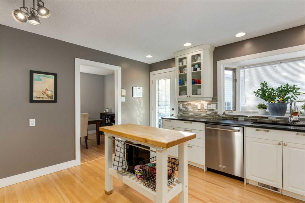 Beautifully updated, this charming family home is ideally situated on an oversized 65′ x 110′ lot. Prime location; Only steps to a park, greenspace and easy walking distance to the north lake entrance and Bonavista Promenade. Offering 2,191 SF of living space, this residence welcomes you with a bright and airy ambiance upon entry. Hardwood flooring flows throughout the living room, dining room and into the revamped kitchen featuring an abundant of white, ceiling height cabinets, sleek quartz countertops, undercabinet lighting and stainless steel appliances (including a gas cooktop). Upstairs you will find the master bedroom with a 4 piece ensuite and 2 generously sized guest bedrooms which share a 4 piece bathroom. The lower levels encompass the 4th bedroom with built-in maple desk, 3 piece bathroom, family room, laundry room, an abundance of storage! The south-facing backyard showcases mature landscaping with expansive patio and deck space with large trees providing a private oasis. Double gates to the alley allows for about 30′ of trailer parking. Completing the property is an oversized double garage (22’x24′) with alley access. Close to schools, 2 minute drive to South Centre Mall and convenient c-train ride downtown along with year round family enjoyment of the best in the city – Lake Bonavista! Call Today!