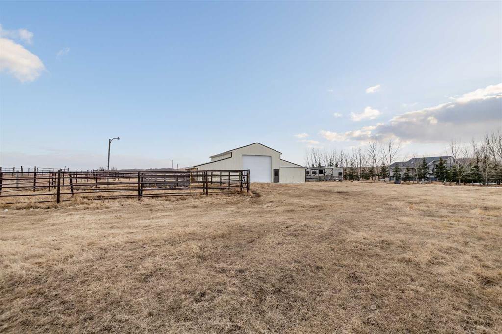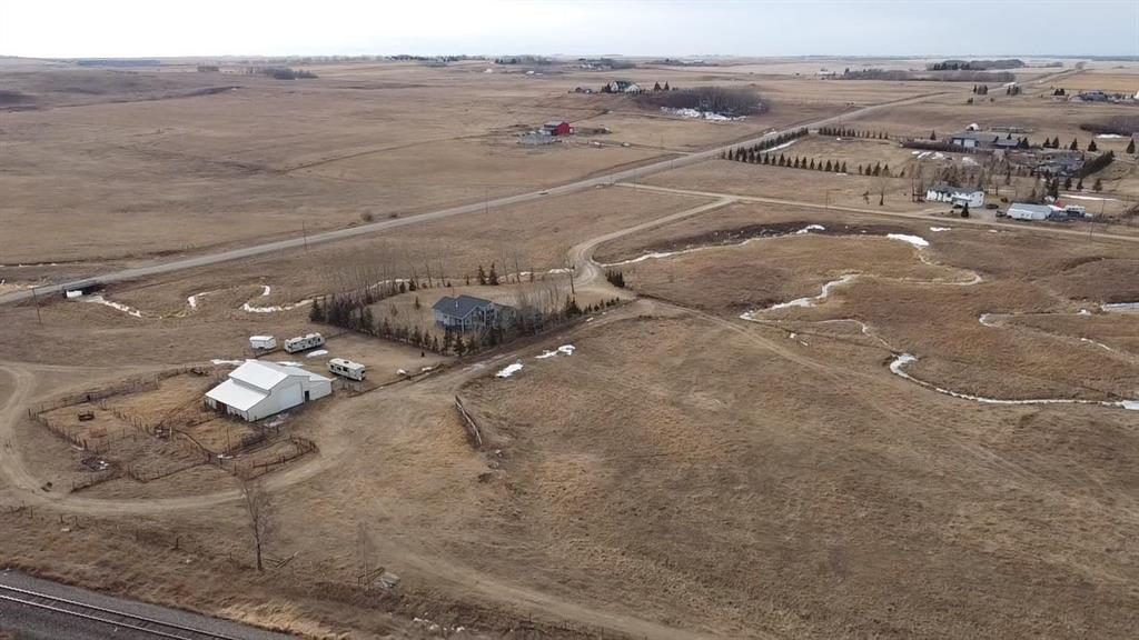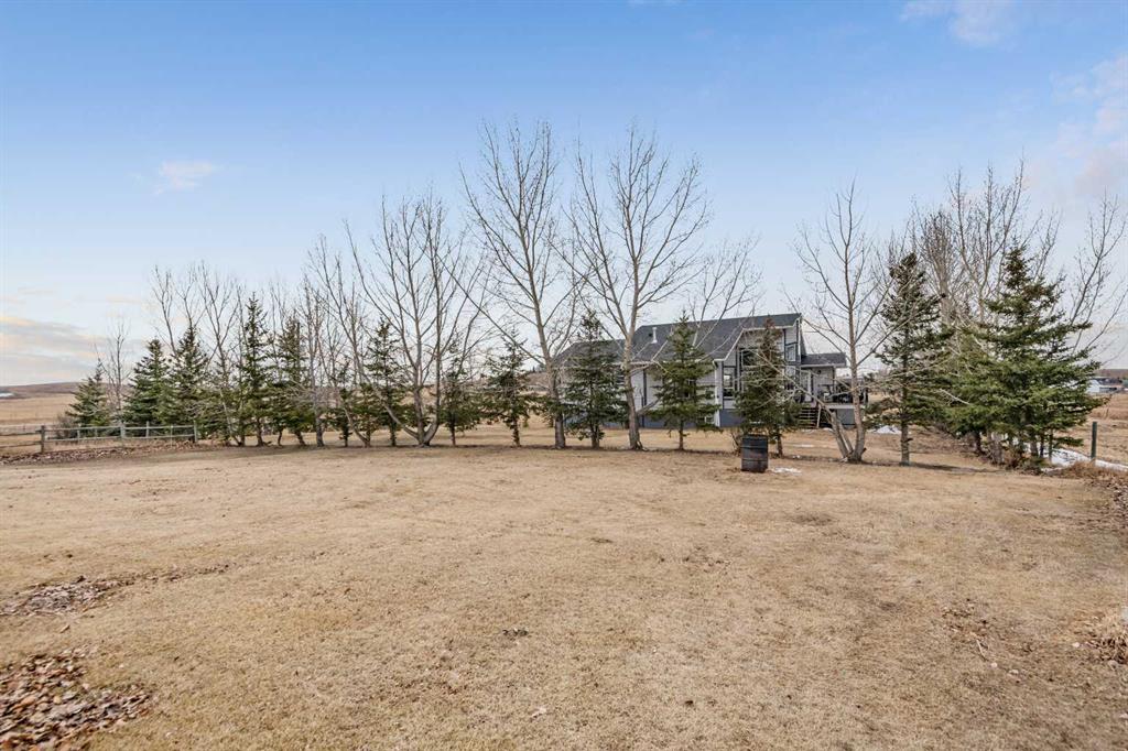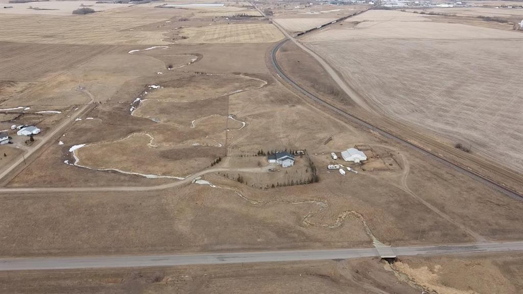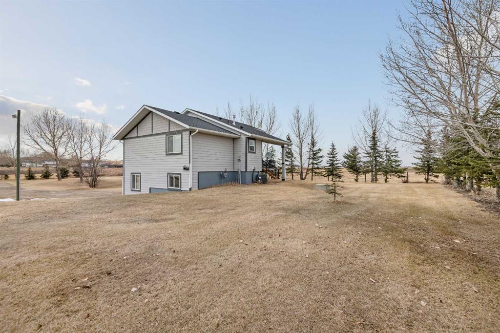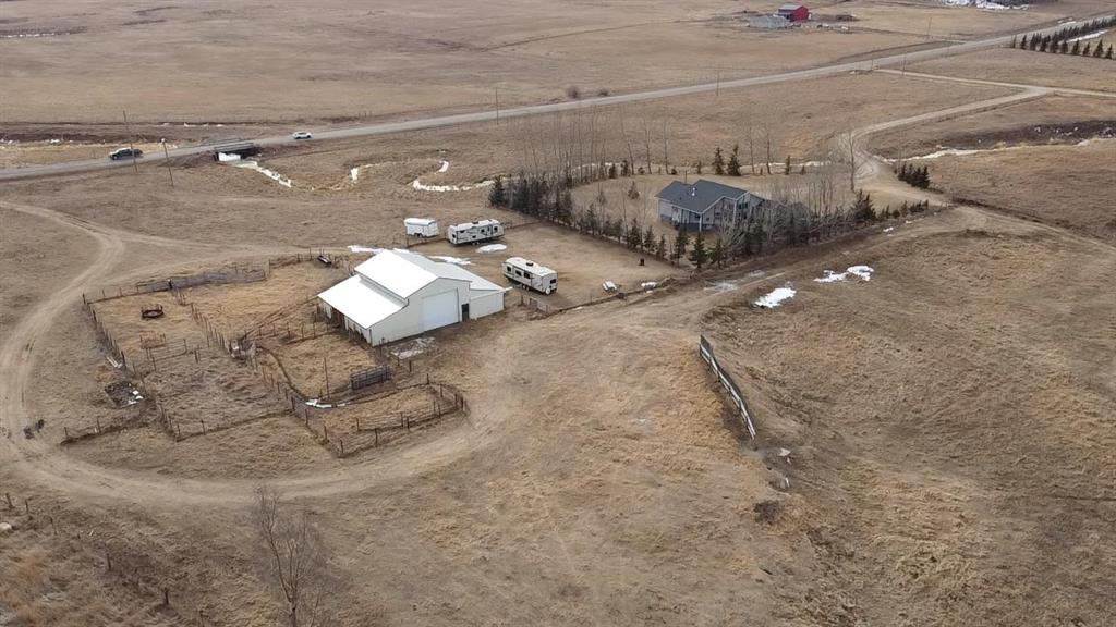 *Open House Saturday April 11, 2-4 PM* Welcome to this beautifully maintained 30.89 acre property in Rocky View County, zoned Ag General, offering a perfect blend of privacy, functionality & convenience just under 10 mins to Airdrie & 25 mins to Calgary Airport. Entering the home you are greeted by a spacious foyer with durable tile flooring leading upstairs to the bright main level featuring large windows, vaulted ceilings & an inviting family room with gas fireplace. The kitchen showcases rich cabinetry, granite countertops, stainless steel appliances, plus a cozy breakfast nook surrounded by windows, while a separate formal dining area sits adjacent for larger gatherings. Just off the kitchen is a convenient laundry room combined with a 1/2 bath & direct access to the newer deck overlooking the property. The main level includes 3 bedrooms including a primary retreat with walk-in closet & 3 pc ensuite, along with a full 4 pc bathroom. The mostly finished basement offers approximately 1075 sq ft with 2 additional bedrooms, a large open rec space, plenty of natural light for a lower level, plus room to add another bathroom & potentially a 6th bedroom or flex space with only about 250 sq ft left to complete. The home is finished with durable Hardie board siding, has central air conditioning & shingles replaced in 2022 along with the deck. Outside you will find a 23×21 attached double garage, a 40×60 barn/shop, fenced & cross fenced pasture, a waterer conveniently located near the barn, plus a scenic meandering creek bordering the property creating a picturesque & functional rural setting ideal for livestock, hobby farming or simply enjoying acreage living.