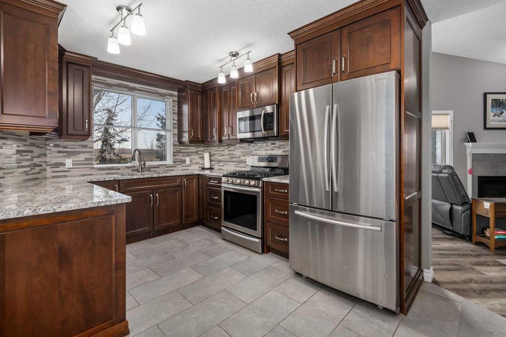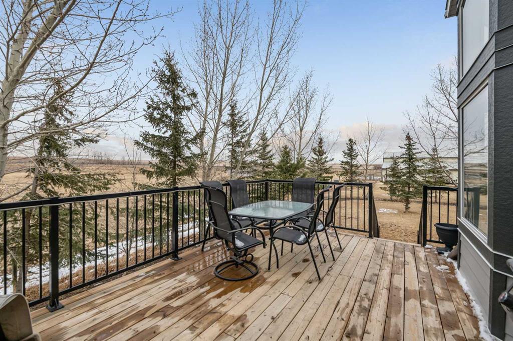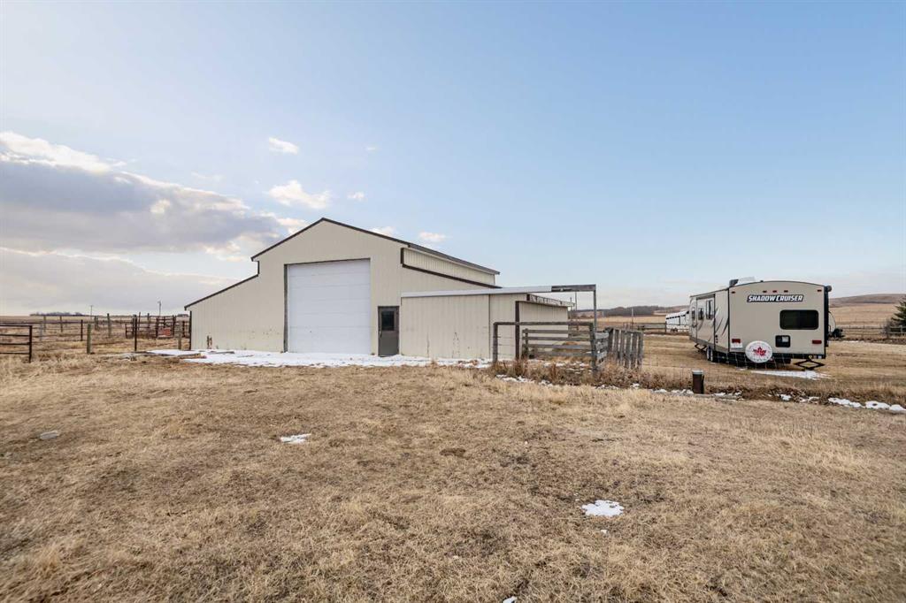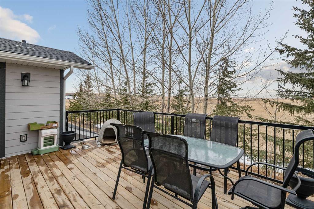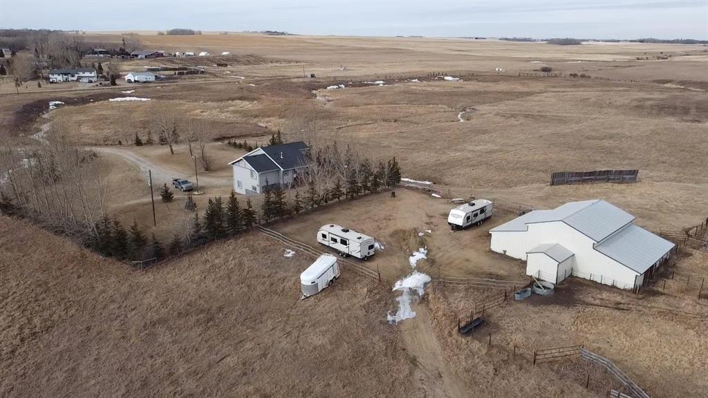 *Open House Saturday April 11, 2-4 PM* Welcome to this beautifully maintained 30.89 acre property in Rocky View County, zoned Ag General, offering a perfect blend of privacy, functionality & convenience just under 10 mins to Airdrie & 25 mins to Calgary Airport. Entering the home you are greeted by a spacious foyer with durable tile flooring leading upstairs to the bright main level featuring large windows, vaulted ceilings & an inviting family room with gas fireplace. The kitchen showcases rich cabinetry, granite countertops, stainless steel appliances, plus a cozy breakfast nook surrounded by windows, while a separate formal dining area sits adjacent for larger gatherings. Just off the kitchen is a convenient laundry room combined with a 1/2 bath & direct access to the newer deck overlooking the property. The main level includes 3 bedrooms including a primary retreat with walk-in closet & 3 pc ensuite, along with a full 4 pc bathroom. The mostly finished basement offers approximately 1075 sq ft with 2 additional bedrooms, a large open rec space, plenty of natural light for a lower level, plus room to add another bathroom & potentially a 6th bedroom or flex space with only about 250 sq ft left to complete. The home is finished with durable Hardie board siding, has central air conditioning & shingles replaced in 2022 along with the deck. Outside you will find a 23×21 attached double garage, a 40×60 barn/shop, fenced & cross fenced pasture, a waterer conveniently located near the barn, plus a scenic meandering creek bordering the property creating a picturesque & functional rural setting ideal for livestock, hobby farming or simply enjoying acreage living.
