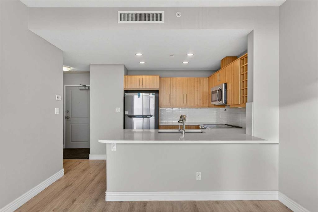 Welcome to this beautifully updated and meticulously maintained 2-bedroom, 2-bathroom condo featuring breathtaking southwest exposure and unobstructed mountain views from both the living room and primary bedroom. Flooded with natural light, this home offers the perfect blend of comfort, style, and convenience in one of Calgary’s most connected west-side locations. The home has been tastefully upgraded with brand-new quartz countertops in both the kitchen and bathrooms, new modern faucets, and brand-new stainless steel appliances, giving the space a fresh, contemporary feel and true move-in-ready appeal. The bright and spacious open-concept layout is perfect for both everyday living and entertaining, while large windows frame spectacular views and stunning sunsets. Strategically located just 10 minutes from downtown, this unbeatable location offers direct access to bike paths leading to the Bow River and city core. Westbrook Mall, Walmart, shops, cafés, restaurants, and the Westbrook LRT station are literally steps from your door, making commuting and daily errands effortless. Shaganappi Golf Course is right next door for outdoor enthusiasts. Residents enjoy resort-style amenities including a fitness centre, indoor swimming pool, hot tub, and bookable conference rooms. The unit also includes a titled heated underground parking stall and an assigned storage locker for added convenience. Perfect for professionals, down-sizers, or investors, this is a rare opportunity to own a bright, upgraded, view-oriented home in an unbeatable location.