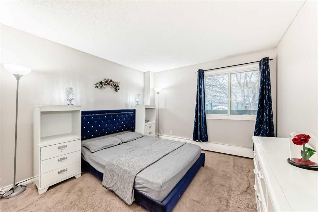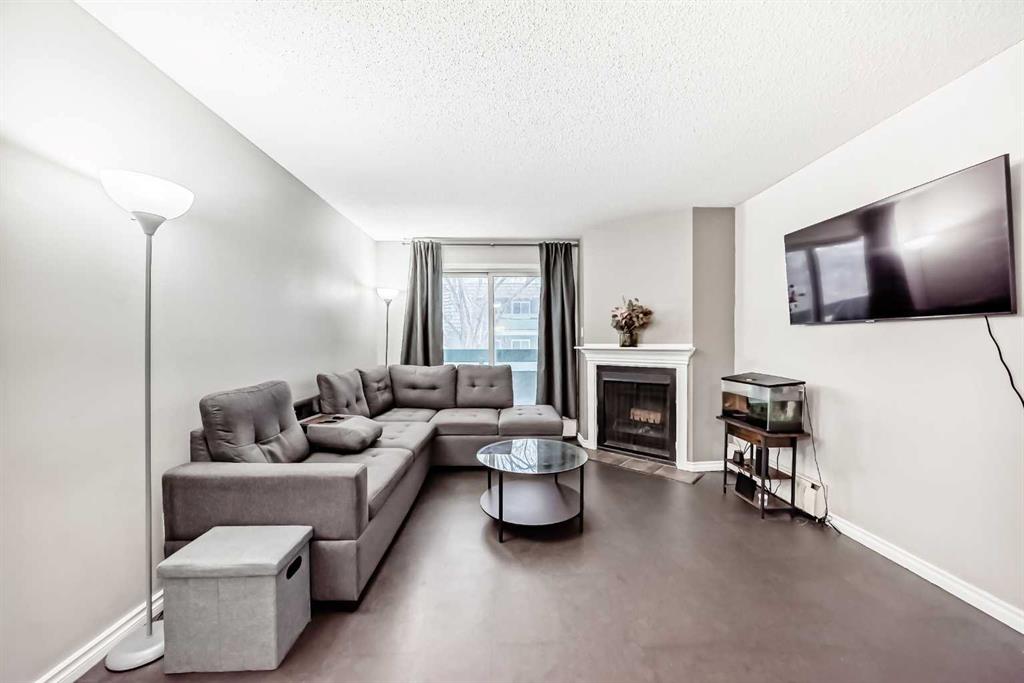 Bright and quiet one-bedroom condo on the second floor with a large living area, wood-burning fireplace, and a full-length balcony overlooking green space. The updated kitchen includes modern cabinets and appliances, and the spacious bedroom fits a king-sized bed. Building amenities include a gym, tennis and squash courts, social room, and playground. Shared laundry is on the same floor. Comes with assigned parking and visitor parking. Conveniently located near transit, shopping, recreation, and the LRT. Condo fees cover heat, water, insurance, and exterior maintenance