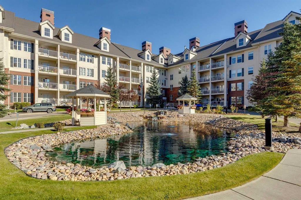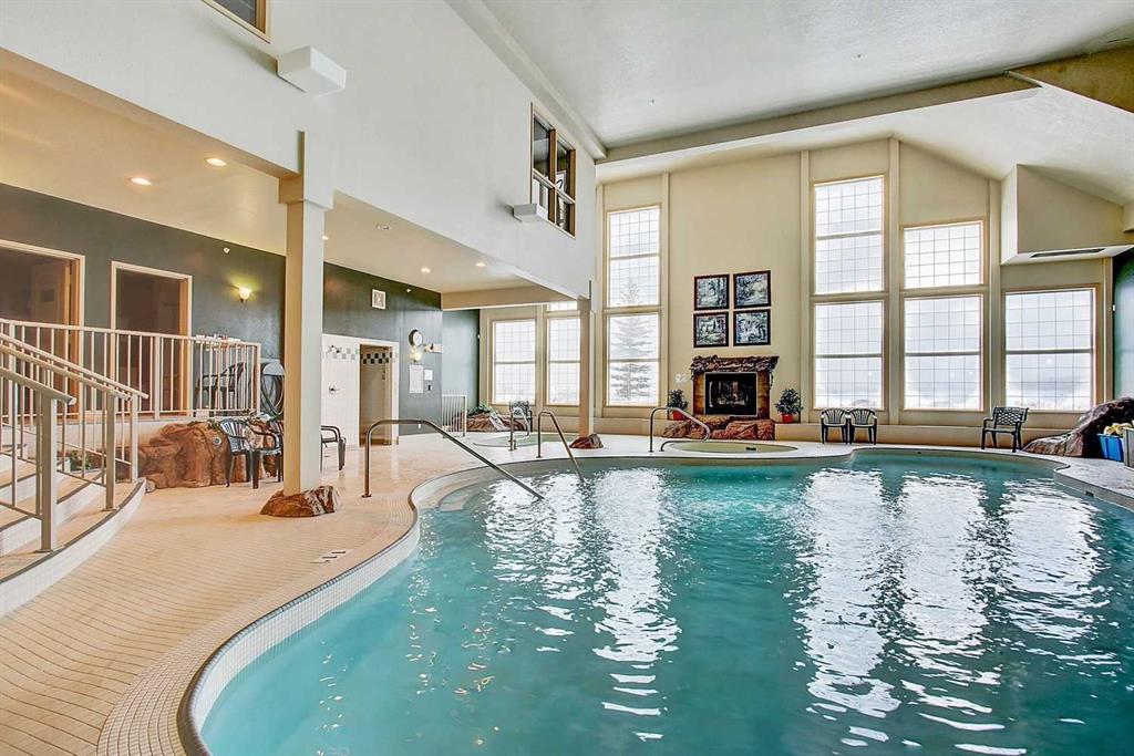 Resort-style amenities include an indoor swimming pool, hot tubs, fully equipped fitness room, theatre, billiards/games room open to a dance floor and party space, library, car wash bay, and workshop area in the heated parkade. Beautiful walking paths surround the pond to the south with sitting areas throughout the grounds.