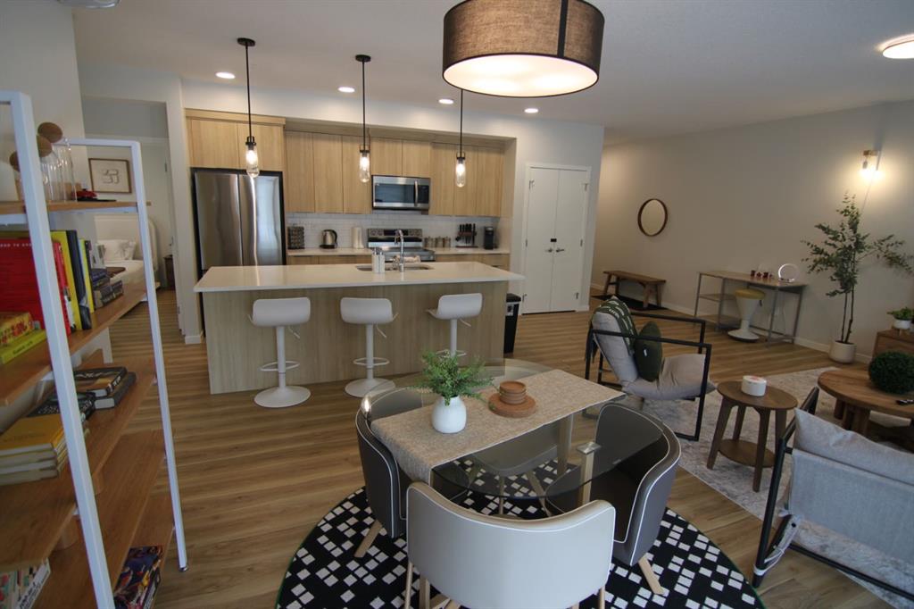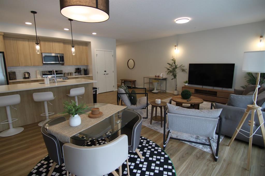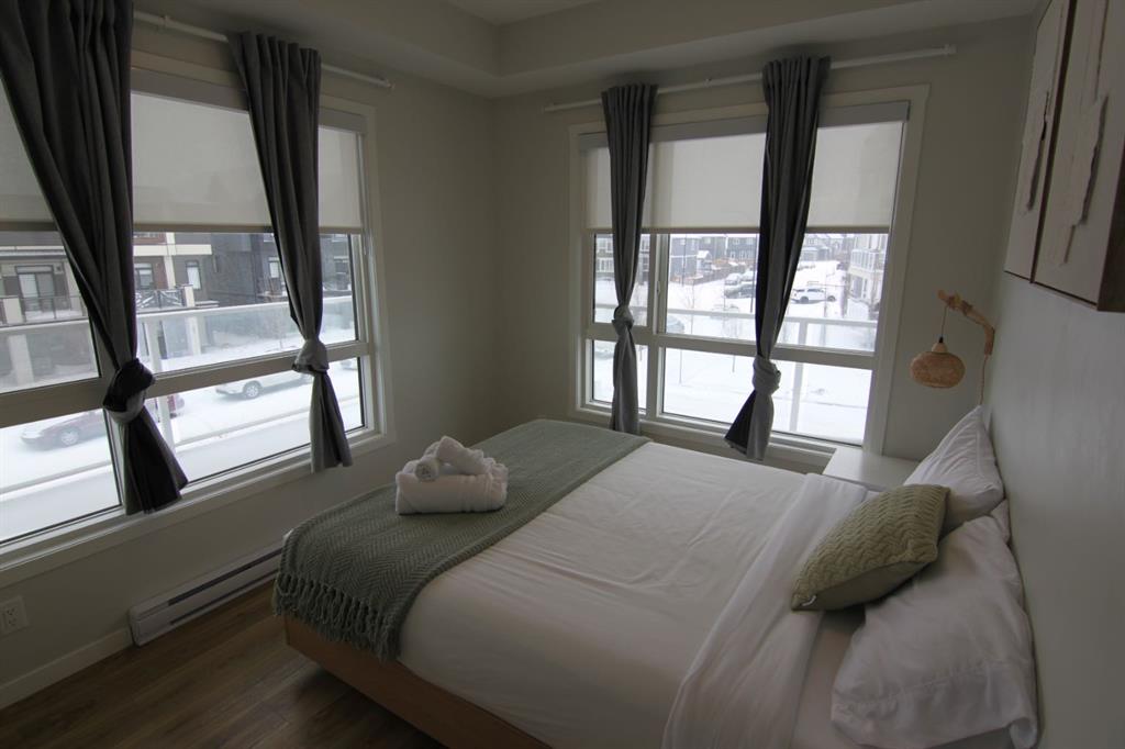 Step into a world of modern luxury with this pristine 2023-built corner residence, offering 1,055 sq. ft. of sophisticated living space. This air-conditioned 2-bedroom, 2-bathroom home is defined by its open-concept layout and designer upgrades. The gourmet kitchen is a chef’s dream, featuring a massive quartz island, premium built-in oven and microwave, and sleek cabinetry. The primary retreat is a sanctuary of its own, boasting a dedicated office nook, a spacious walk-in closet, and a spa-like 4-piece ensuite. Situated just steps from the South Health Campus, the world’s largest YMCA, and Seton’s vibrant dining scene, this unit combines the tranquility of a corner home with the convenience of an urban lifestyle. Complete with titled underground parking and a pet-friendly atmosphere, this is move-in-ready excellence at its finest.
