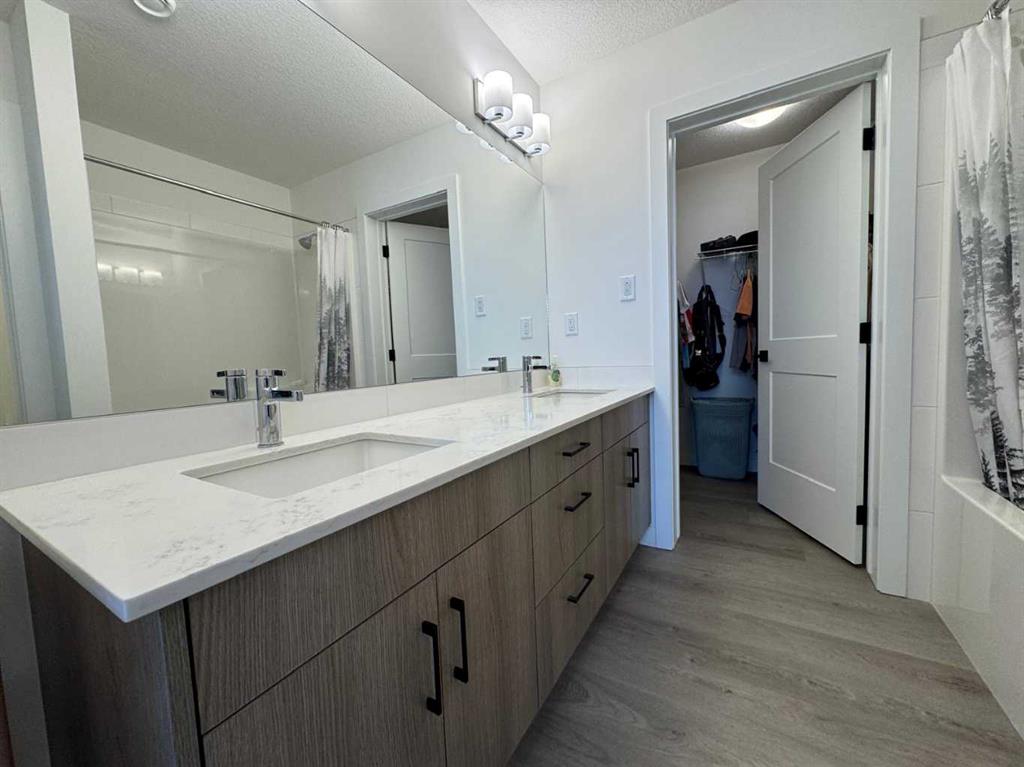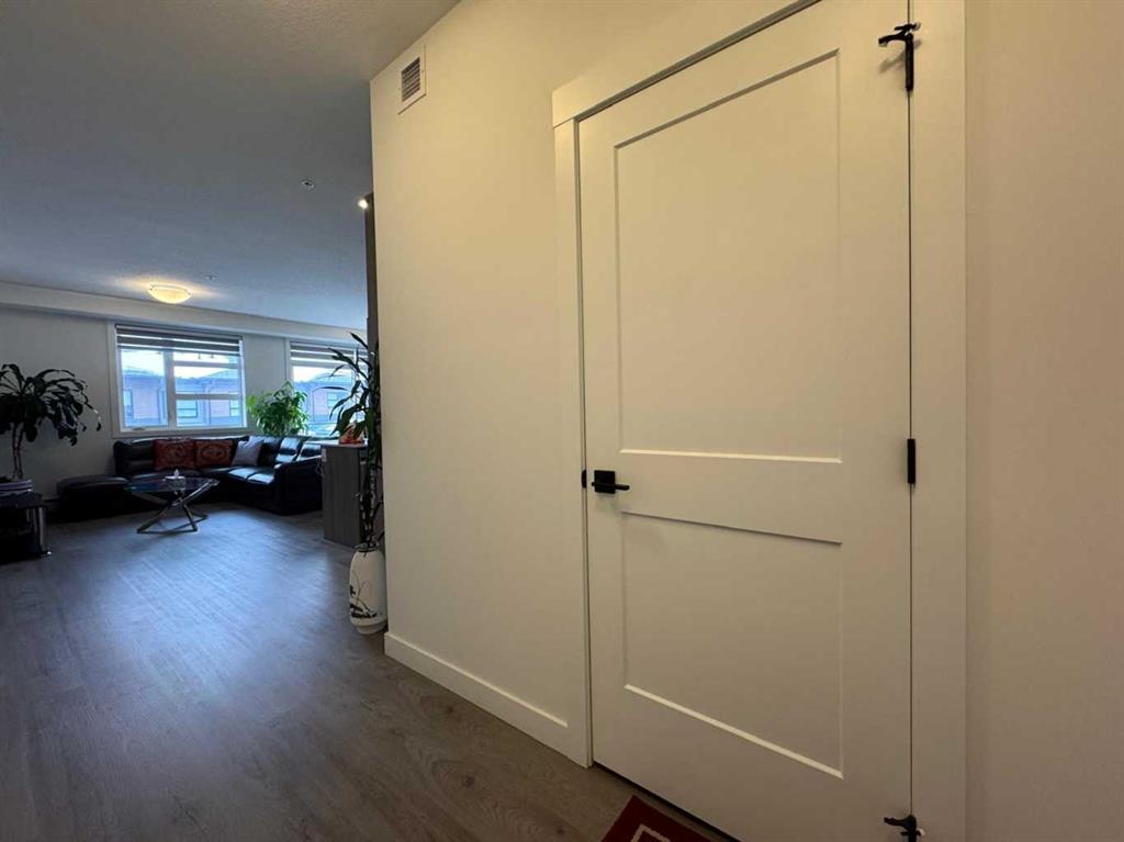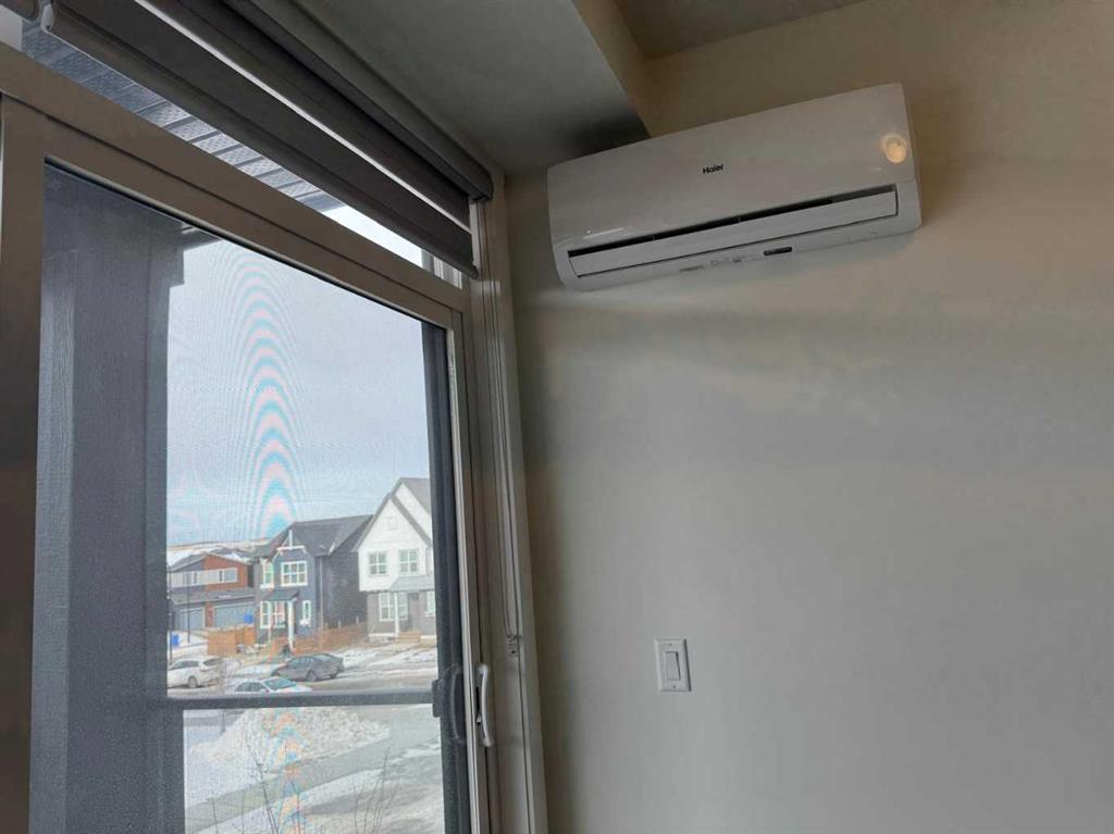 Bright and Spacious with Functional layout! Experience the comforts of modern living with this stunning 2-bedroom, 2-bathroom corner unit, loaded with upgrades, well located in Logel Homes’ Livingston Views – Livingston’s vibrant, growing community. This home offers easy access to airport, downtown, shopping, dining, and major highways including Stoney Trail & Deerfoot Trail. Enjoy the upgraded Executive kitchen with open design and upgraded with a premium stainless-steel appliance package; built-in wall oven and microwave cabinet tower, quartz counters, oversize center island with large undermount sink, overlooking the huge living room and dining room with patio doors to oversize balcony (20’5” x 6’2”) where you can enjoy your BBQ and decorate with your favorite patio furniture. The Spacious Master bedroom includes a large ensuite bath: with double sinks with large quartz counter, toilet with separate door and a walk in closet with door. Spacious 2nd bedroom: – with windows on both sides which is an added feature of this corner unit. 2nd bathroom upgrade includes a walk in shower with glass doors, quartz counters. Other features of this beautiful unit: – 9-Ft. Ceilings, a breathe easy with Logel Homes’ exclusive fresh air intake system, in unit Air Conditioning unit, spacious entry and a large laundry room with ample storage space. This unit also comes with a titled heated underground parking and an assigned storage unit.