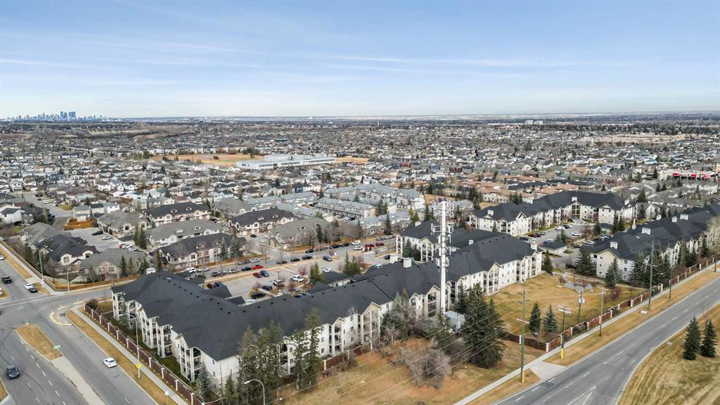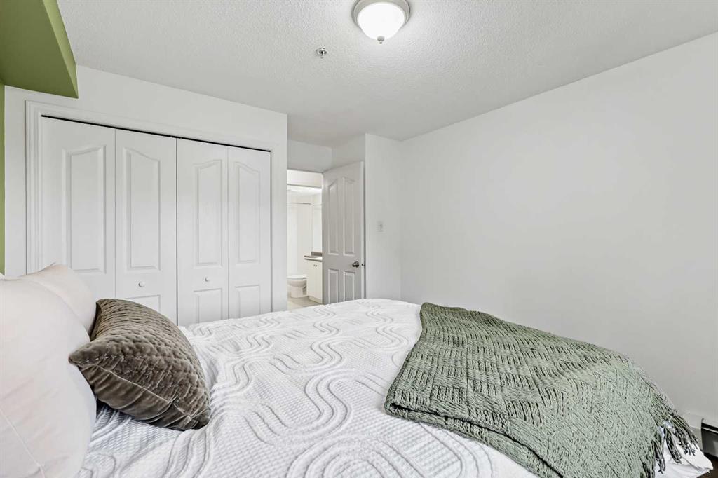 Great opportunity in this freshly renovated unit for first time buyers, investors, or downsizers in this desirable neighborhood! Brand new vinyl plank flooring throughout, freshly painted, newer appliances, and move in ready right away. Open concept floorplan into large living room with sliding doors out to the good-sized covered balcony. Updated kitchen with crisp white cabinetry, sleek black backsplash, new high end LG stainless steel appliances, and open bar ledge to the dining area. Good sized master bedroom with large window letting in lots of natural light and double closet. Adjoining full 4-piece bathroom with tile flooring and tub surround across the hall. Spacious den makes a great home office, gym, storage, or guest bedroom space! Convenient in-unit laundry closet with stacked washer and dryer. VIP parking stall closest one to the front entrance with power. Located in a very well managed building with low condo fees that include all utilities… ELECTRICITY, HEAT, WATER and SEWER! All in a prime location in the sought after community of Evergreen, close to numerous shops, parks, schools, restaurants, and quick access onto Stoney Trail – making commuting a breeze! This property shows 10/10, is move-in ready and awaiting its new owner!