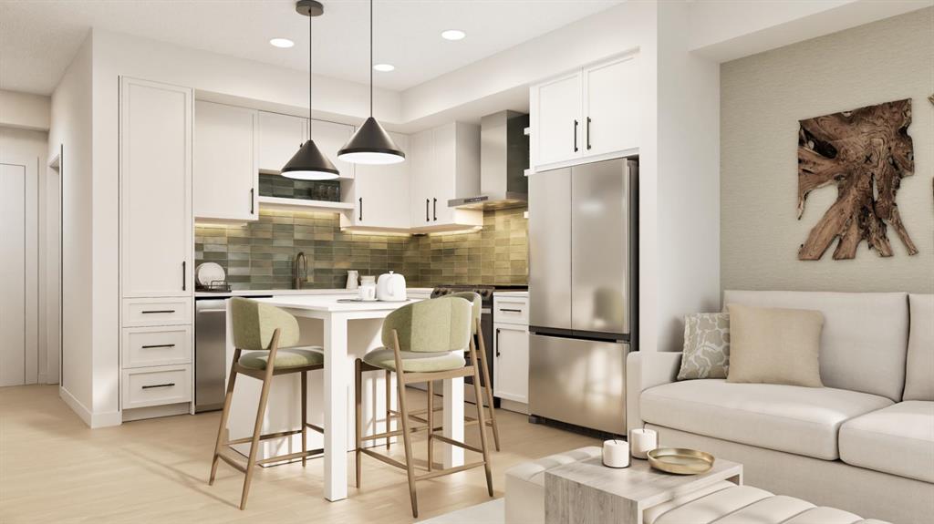 *Pre-selling and slated for first occupancies in late 2027* FIRST TIME HOME BUYERS NEW HOME GST REBATE AVAILABLE!! Smart, stylish, and exceptionally versatile, Unit B at Metro One is designed for modern living. This 1-bedroom + den layout offers the perfect balance of function and flexibility—ideal for urban professionals, remote workers, and lifestyle-focused buyers seeking a space that adapts to their needs. Inside, the thoughtfully designed interior features a contemporary L-shaped kitchen complete with a full island and a built-in table—perfect for casual dining, working from home, or entertaining guests. A sleek cabinet-style pantry keeps everything organized without sacrificing space, while the bathroom includes a practical tower linen cabinet for added storage. The spacious den provides incredible flexibility, easily transforming into a dedicated home office, guest room, or creative studio. Paired with air conditioning for year-round comfort and a terrace-level balcony for seamless indoor-outdoor living, this home delivers both convenience and comfort in every detail. Whether you’re enjoying your morning coffee outside or hosting friends in your open-concept living space, Unit B is designed to support your lifestyle. Inside every home, professionally curated interior collections—crafted by an experienced design team with six distinct styles to choose from, you can select a look that reflects your personal taste without the added cost or stress of upgrades. At Metro One, style truly comes standard. Located within the thoughtfully planned Metro One development, residents benefit from contemporary architecture, quality construction, and beautifully landscaped surroundings. The community is designed with connection and convenience in mind, offering easy access to nearby shops, restaurants, transit, and recreational amenities. Positioned for both lifestyle and location, Metro One offers quick access to Stoney Trail and is surrounded by natural beauty. The protected Priddis wetlands lie just to the east, while the foothills and Rocky Mountains are only a short drive west—making it easy to enjoy both urban convenience and outdoor adventure. Developed by Cardel in the master-planned community of Silverton, Metro One represents a smart investment and a vibrant place to call home.