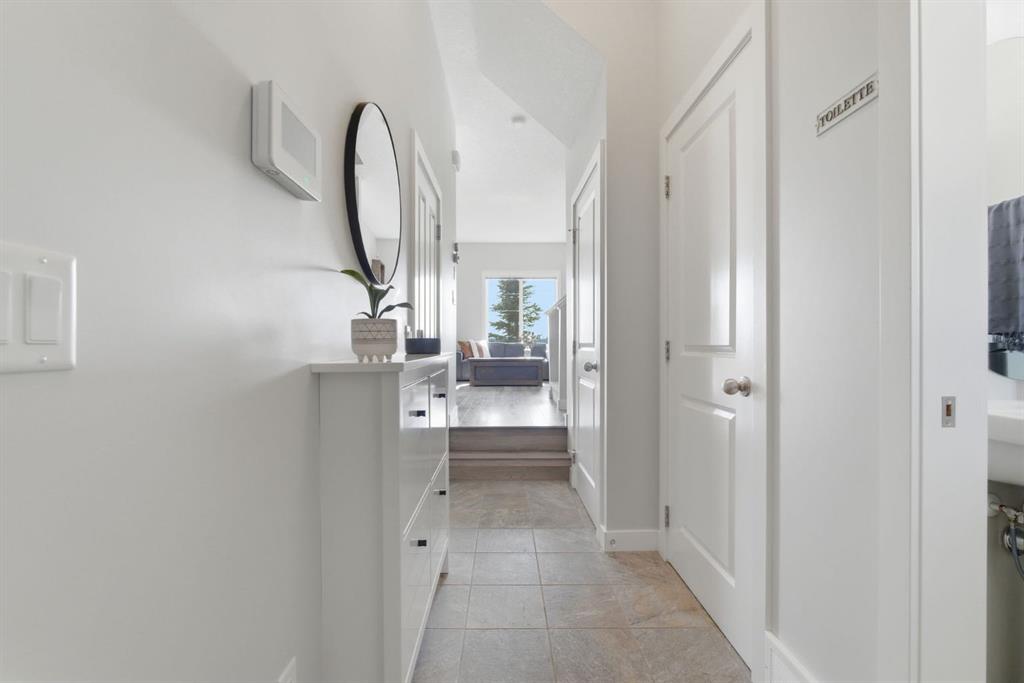 **OPEN HOUSE SATURDAY, MARCH 28th 1:00-3:00pm** Welcome to one of Cochrane’s most coveted townhome locations—where uninterrupted views of Jumping Pound Nature Reserve and Jumping Pound Creek. Backing onto open landscape, this home offers a rare sense of privacy, peace, and connection to the outdoors that sets it apart from the rest. From the moment you walk in, your eye is drawn straight through the home to the expansive views beyond—filling the space with natural light and an immediate sense of calm. Thoughtfully designed and beautifully maintained this modern 3-bedroom home blends clean lines with warm, inviting finishes. At the heart of the home, the bright kitchen is both stylish and functional, featuring white cabinetry, quartz countertops, a contemporary backsplash – perfect for everything from quiet mornings to entertaining guests. The open-concept layout is enhanced by 9’ ceilings and vinyl flooring, and newer tile creating a seamless and elevated feel throughout. Additional convenient features such as a blackout blind in the master bedroom, Ecosmart water softener have been added to the home. Upstairs, you’ll find three bedrooms, including a serene primary retreat with an upgraded shower and walk in closet. The basement awaits your finishing touches to add additional living space and a bathroom. The attached garage will keep your vehicle dry and out of the elements or provides a perfect storage space for your hobbies and toys. Step outside to your private back deck, where a gas line is ready for summer BBQs and evenings spent soaking in the peaceful surroundings. Immaculately maintained and finished and effortlessly connected to nature, all while being close to everything Cochrane has to offer. A rare opportunity in an unbeatable location—this is the one you’ve been waiting for.