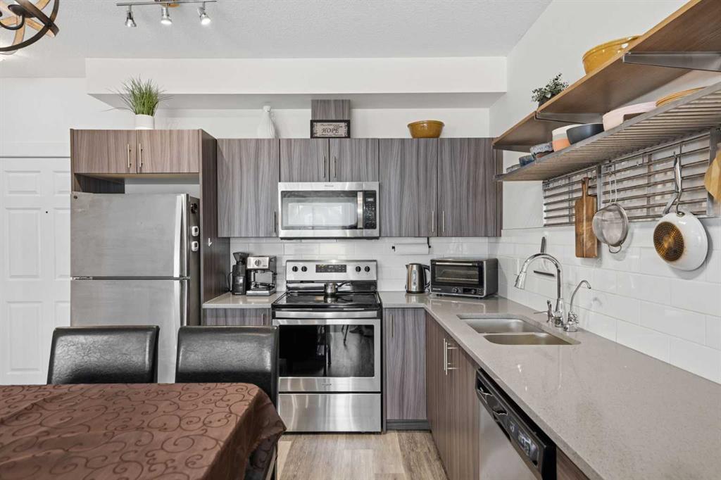 A smart layout and clean modern finishes come together in this move-in ready 2 bedroom, 2 bathroom 2 Parking stall condo located in the growing community of Sage Hill. Everyday living feels comfortable and efficient thanks to air conditioning and an open-concept design that keeps each space connected without sacrificing definition. Gather around the kitchen where stainless steel appliances, ample cabinetry and a practical layout support both quick meals and weekend hosting, while designer lighting brings warmth to the adjoining dining area. Natural light fills the living space as patio sliders extend the footprint outward to a covered balcony that encourages morning coffee, summer barbeques or a quiet place to unwind. Privacy is well considered through a split-bedroom configuration, giving each space its own sense of separation. Unwind in the primary retreat where walk-through dual closets lead to a private ensuite with dual sinks, creating a comfortable daily routine. Flexibility continues in the second bedroom with its own walk-through closet and second access to the 4-piece bathroom, making it equally suited for guests, roommates or a dedicated workspace. In-suite laundry adds convenience while heated underground parking, a second above ground stall and a separate storage locker simplify day-to-day living. Located in the vibrant northwest community of Sage Hill, residents enjoy easy access to scenic walking paths, parks, and natural green spaces, along with nearby shopping, restaurants, and everyday amenities. With quick connections to major roadways, commuting is simple while still enjoying a peaceful, community-oriented setting. A perfect opportunity for first-time buyers, downsizers, or investors—don’t miss out!!