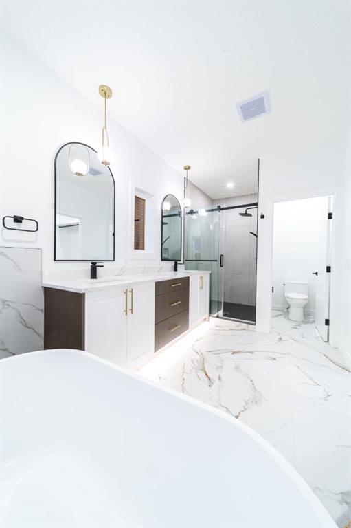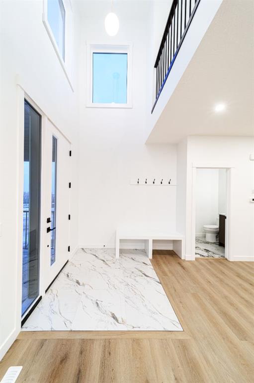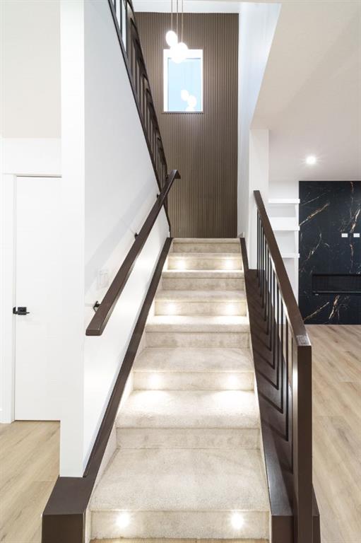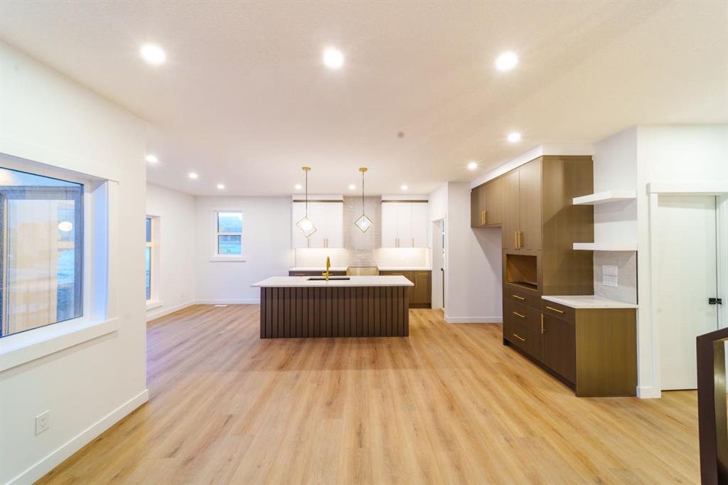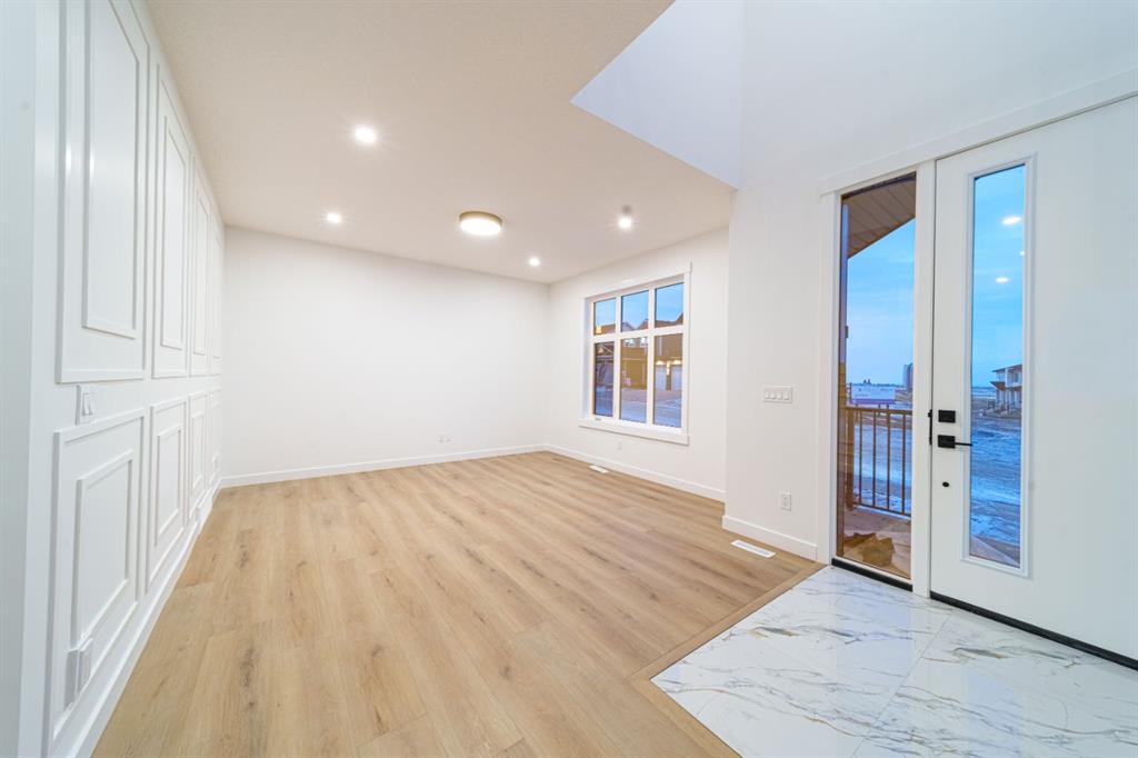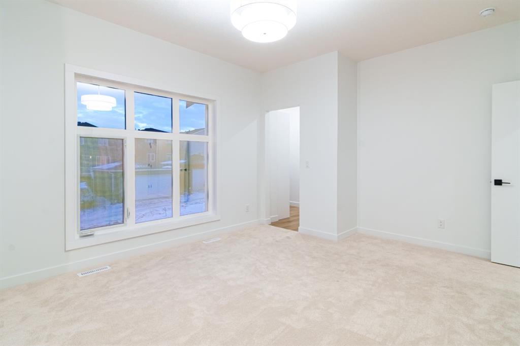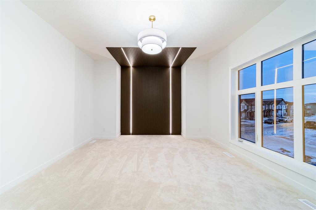 Built by Exquisite Homes The residence features 3 spacious bedrooms and 2.5 elegantly designed bathrooms, highlighted by exquisite finishes such as stunning Maple details, slim shaker-style cabinetry with plywood boxes, sleek black exterior dual-pane windows, high-end lighting, and durable wide plank LVP flooring. We offer the flexibility to provide full finishes upon request. The main floor boasts an open concept design/open to below that seamlessly connects the kitchen, dining nook, and great room, ideal for modern living and entertaining. The kitchen features a large island with quartz countertops and upgraded lighting fixtures, creating a stylish and functional space. A cozy montigo gas fireplace adds warmth and charm to the great room. The main floor also includes a convenient spice kitchen, a study room, a mudroom, and 9-foot ceilings that enhance the feeling of spaciousness. Large windows flood the space with natural light, enhancing the airy atmosphere. Outside, you’ll find a triple-car detached garage, a private front deck, and acrylic stucco throughout the exterior with stone accents. On the second floor, enjoy the grandeur of 9-foot ceilings throughout, including in the spacious bonus room with an open-to-below concept that adds to the home’s luxurious feel. The master suite features a 5-piece custom ensuite with custom tiled shower and a generous walk-in closet, while the second bedroom includes its own walk-in closet. The third bedroom, along with an upper-floor laundry room with built in cabinets, provides additional convenience. Each bedroom is enhanced with elegant tray ceilings, adding a touch of sophistication. The undeveloped basement offers a wealth of potential, featuring rough-ins and a side entrance. It can be customized based on your preferences, allowing you to tailor the space to suit your needs.