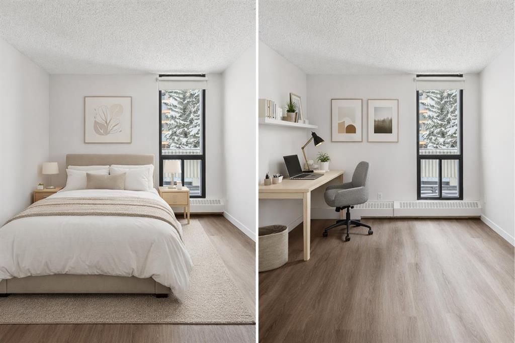 The primary bedroom features a walk-in closet and a well-appointed ensuite, while the second bedroom and full bathroom provide comfortable space for guests or additional workspace.