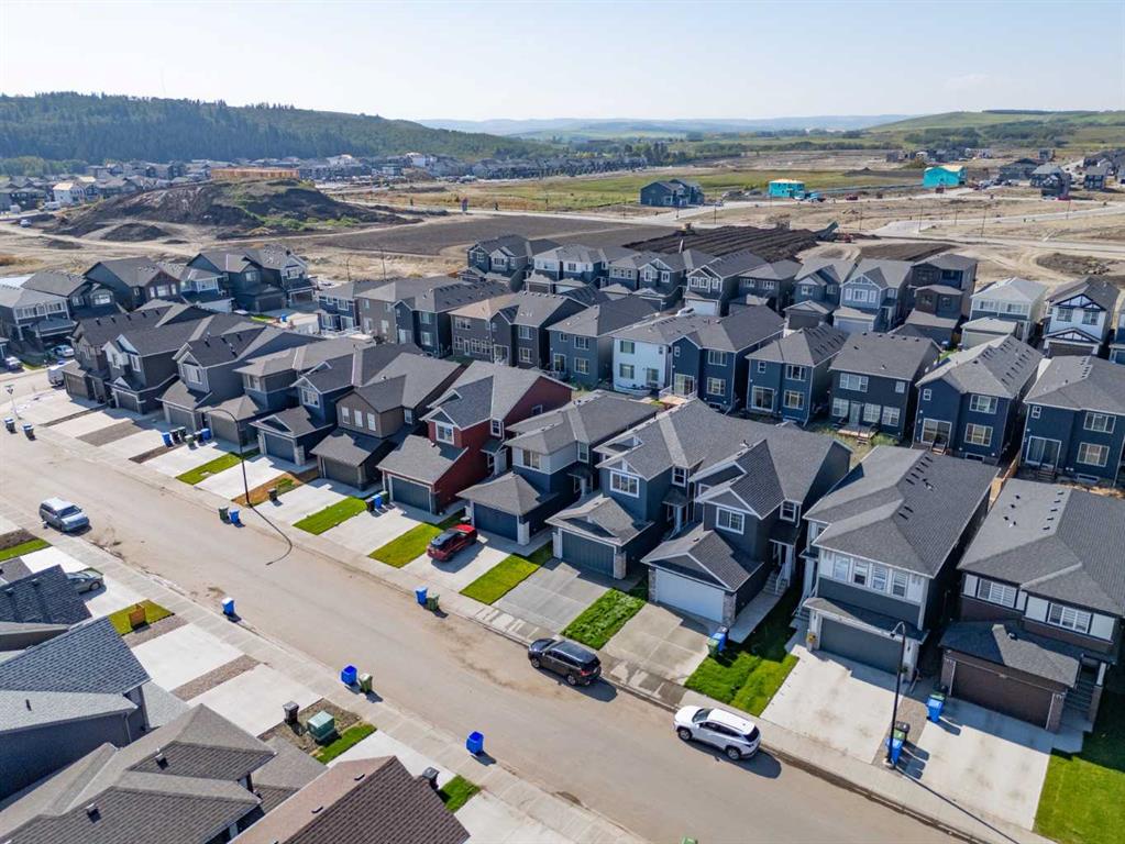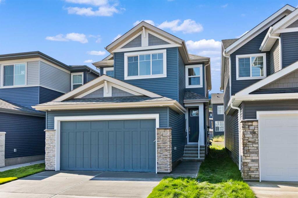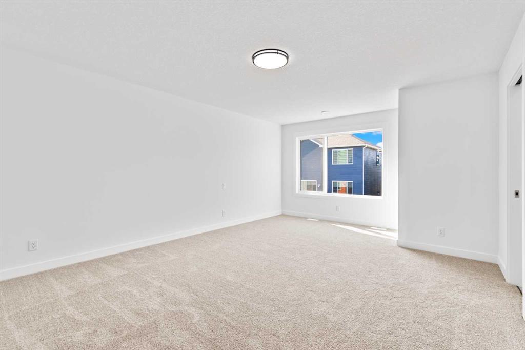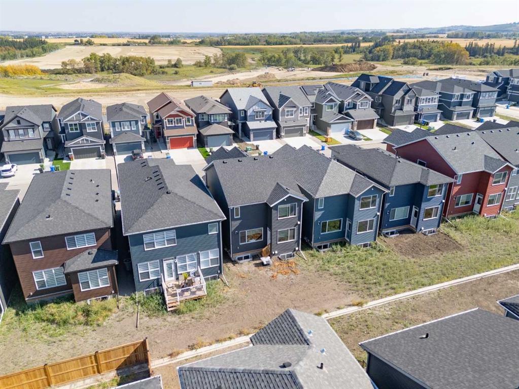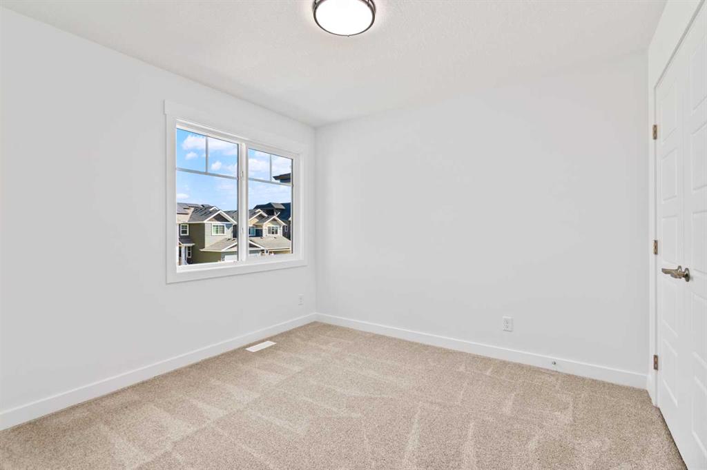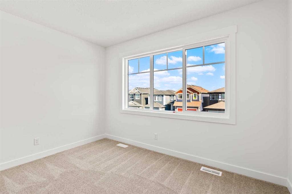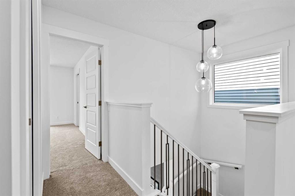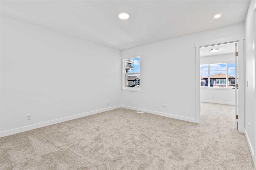 The main floor impresses with 9-foot ceilings, an open-concept upgraded kitchen featuring Level 2 cabinets to the ceiling, a chimney hood fan, built-in microwave, gas range, fridge with water & ice dispenser, and convenient garbage/recycling pullouts. Gather in the spacious living area with a sleek electric fireplace, while oversized triple pane windows fill the home with natural light. Main to upstairs, boasts stylish open railings lead to the private family spaces. With four bedrooms total, there’s room for everyone. The home also includes a 9-foot foundation basement for future development and a separate side entrance, offering potential for a suite (subject to city approval). This is a brand new, never-lived-in 2025 construction, ready for you to make it your own. Located in the beautiful community of Pine Creek, you’ll enjoy a family-friendly atmosphere surrounded by nature with easy access to Calgary’s southwest amenities. Don’t miss your chance to own a move-in ready new build loaded with upgrades!
