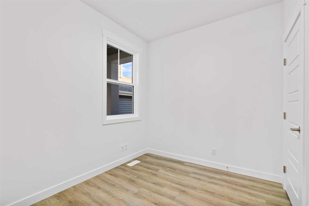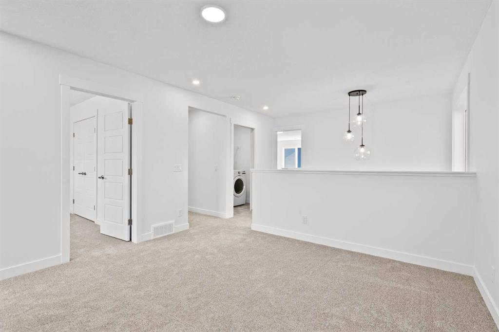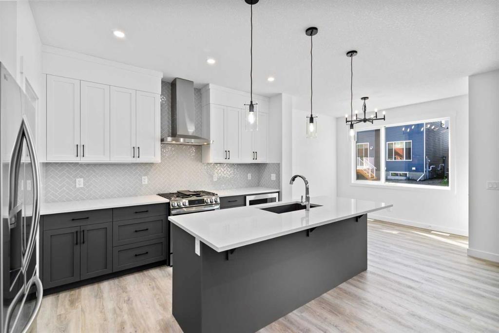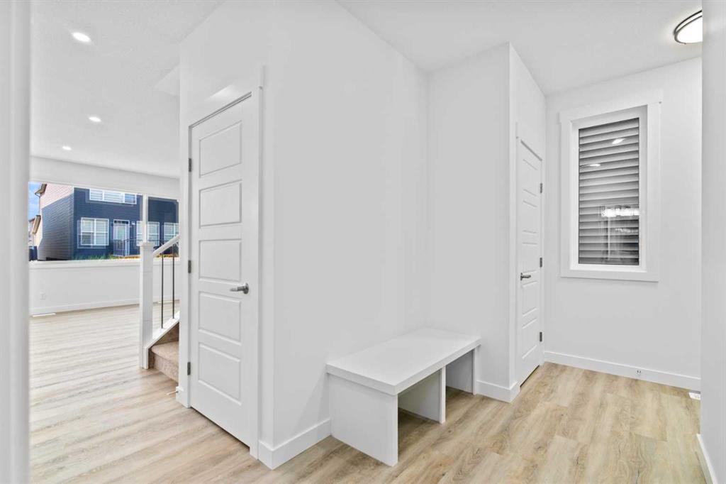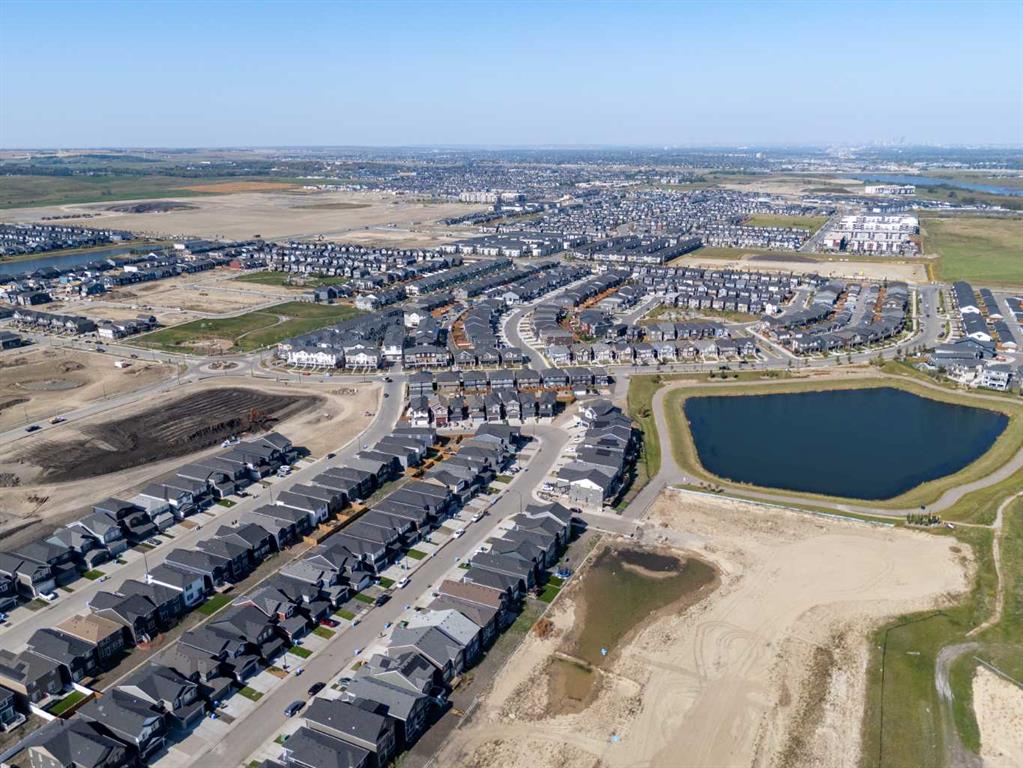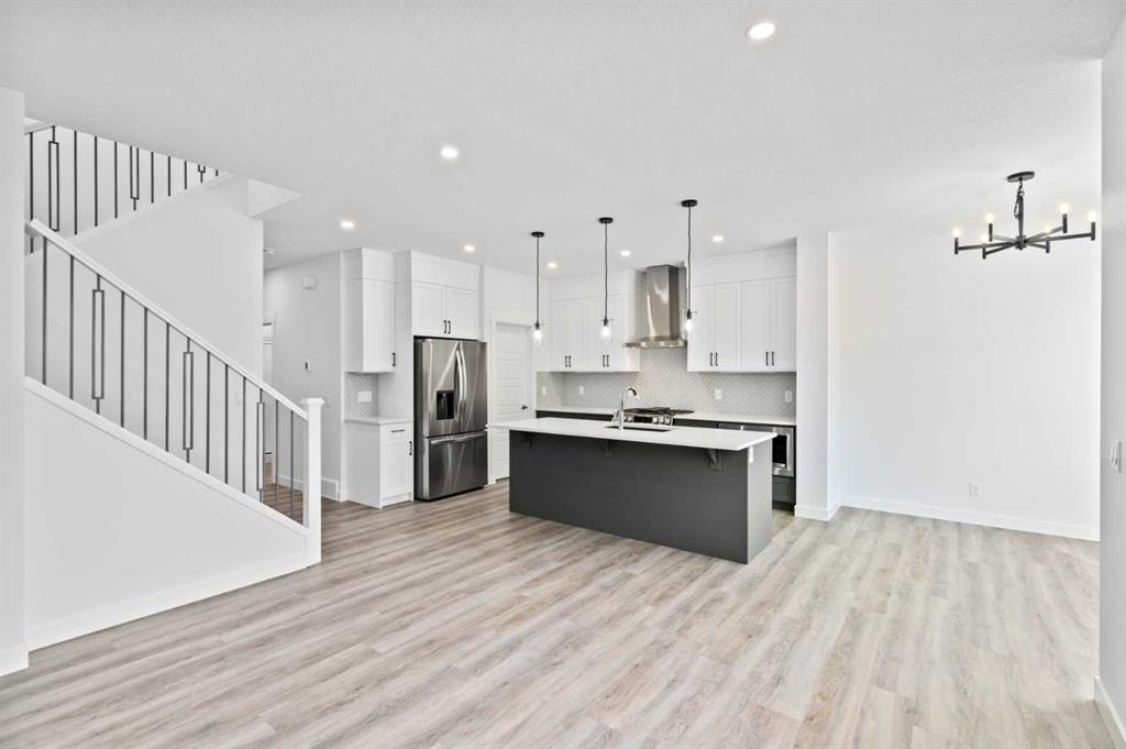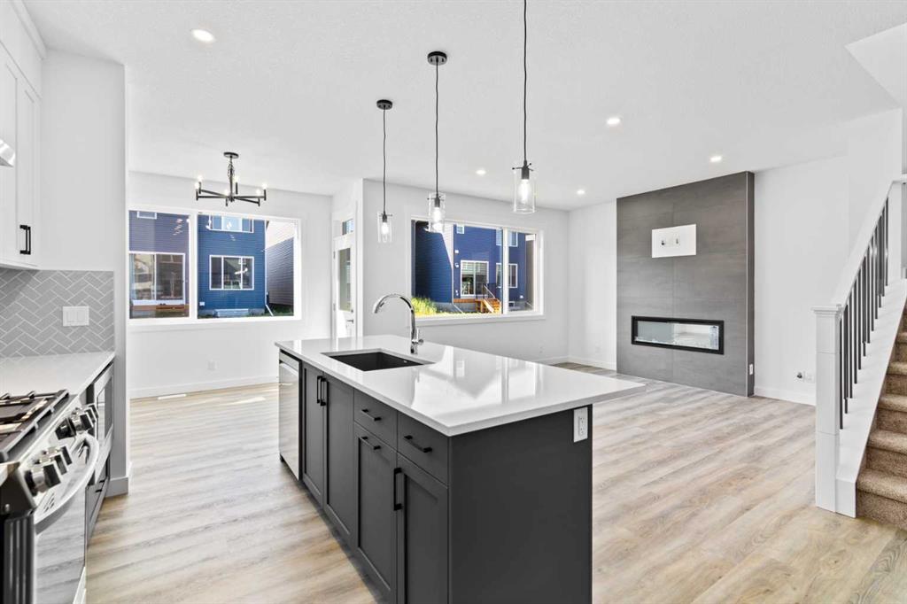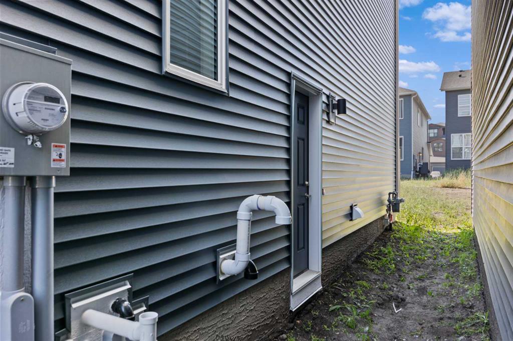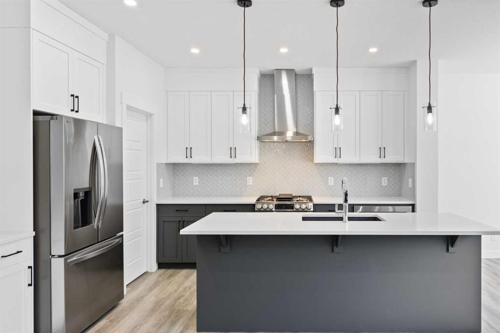 The main floor impresses with 9-foot ceilings, an open-concept upgraded kitchen featuring Level 2 cabinets to the ceiling, a chimney hood fan, built-in microwave, gas range, fridge with water & ice dispenser, and convenient garbage/recycling pullouts. Gather in the spacious living area with a sleek electric fireplace, while oversized triple pane windows fill the home with natural light. Main to upstairs, boasts stylish open railings lead to the private family spaces. With four bedrooms total, there’s room for everyone. The home also includes a 9-foot foundation basement for future development and a separate side entrance, offering potential for a suite (subject to city approval). This is a brand new, never-lived-in 2025 construction, ready for you to make it your own. Located in the beautiful community of Pine Creek, you’ll enjoy a family-friendly atmosphere surrounded by nature with easy access to Calgary’s southwest amenities. Don’t miss your chance to own a move-in ready new build loaded with upgrades!