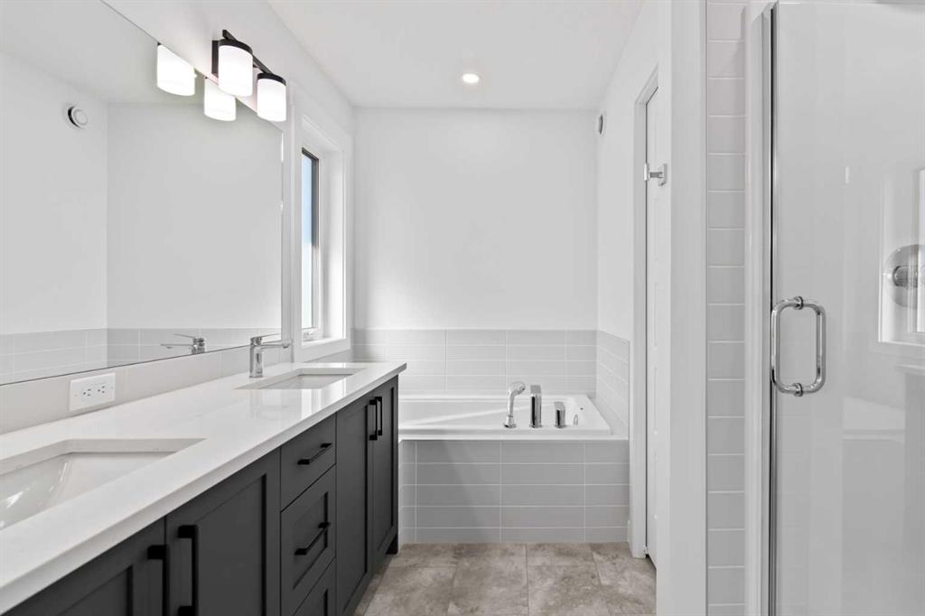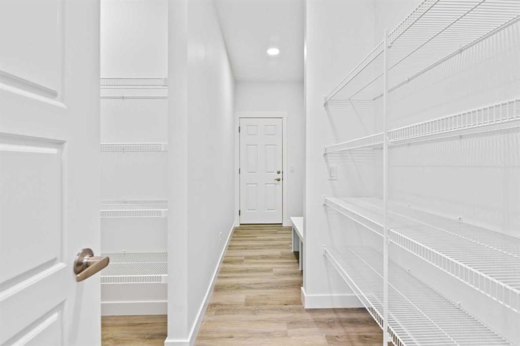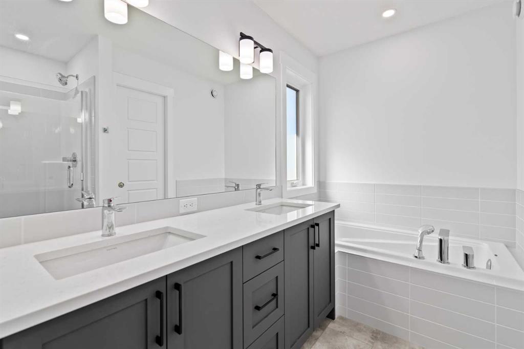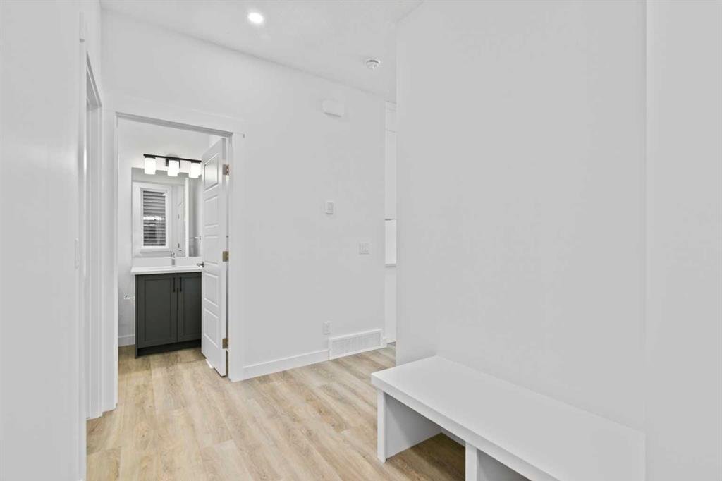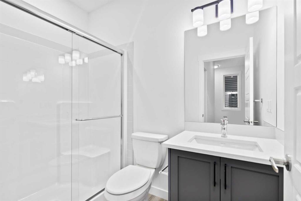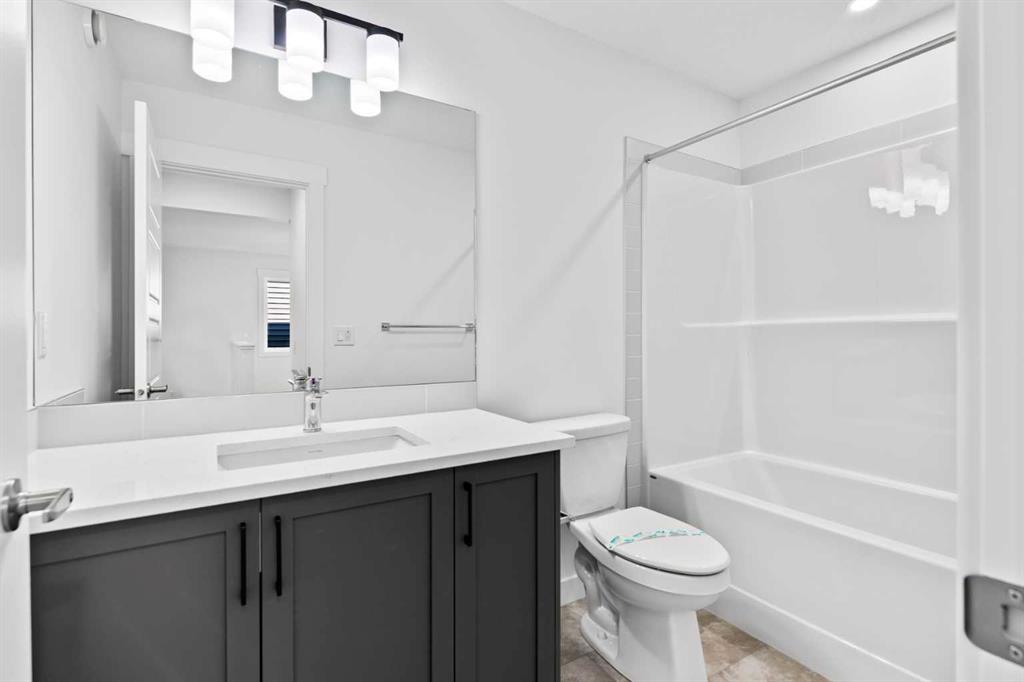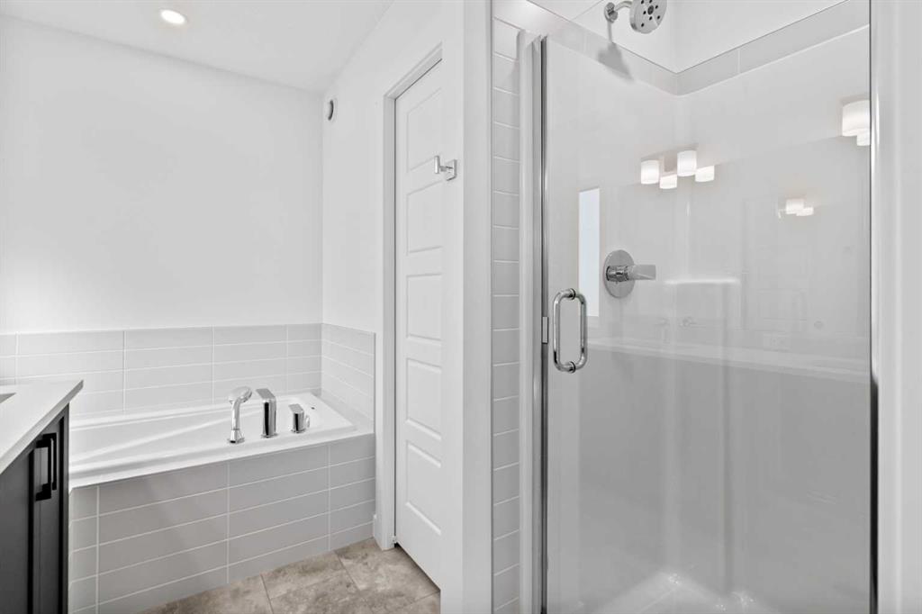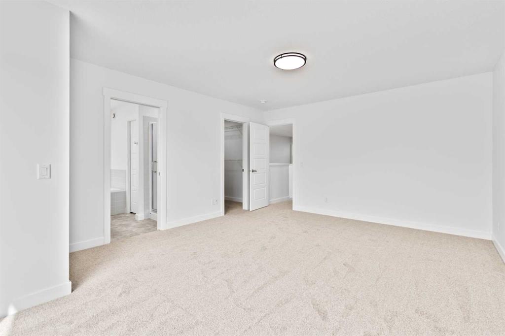 The main floor impresses with 9-foot ceilings, an open-concept upgraded kitchen featuring Level 2 cabinets to the ceiling, a chimney hood fan, built-in microwave, gas range, fridge with water & ice dispenser, and convenient garbage/recycling pullouts. Gather in the spacious living area with a sleek electric fireplace, while oversized triple pane windows fill the home with natural light. Main to upstairs, boasts stylish open railings lead to the private family spaces. With four bedrooms total, there’s room for everyone. The home also includes a 9-foot foundation basement for future development and a separate side entrance, offering potential for a suite (subject to city approval). This is a brand new, never-lived-in 2025 construction, ready for you to make it your own. Located in the beautiful community of Pine Creek, you’ll enjoy a family-friendly atmosphere surrounded by nature with easy access to Calgary’s southwest amenities. Don’t miss your chance to own a move-in ready new build loaded with upgrades!