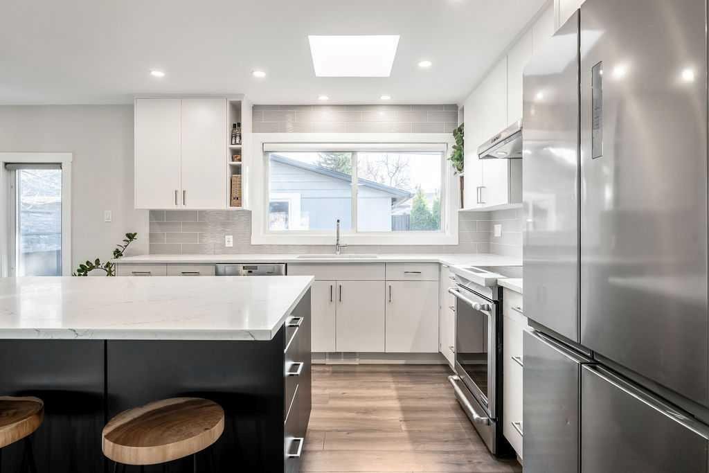 OPEN HOUSE this SATURDAY NOV 15, 1 – 4pm. This modern 3 Bedroom WEST Haysboro bungalow perfectly blends mountain-inspired luxury with inner-city living. Step inside and you’ll instantly feel it: open-concept living, natural textures, and rich wood tones that make every day feel like a weekend getaway. Large windows frame the trees and grasses, inviting the outdoors in and flood the home with filtered light. The chef’s kitchen is a total showpiece — sleek quartz counters and an island big enough for brunch and board games. Induction oven and a Miele dishwasher. The primary bedroom is a peaceful retreat with patio doors to a south facing deck for sun drenched morning coffees. You’ll love the insulated double garage in the winter.