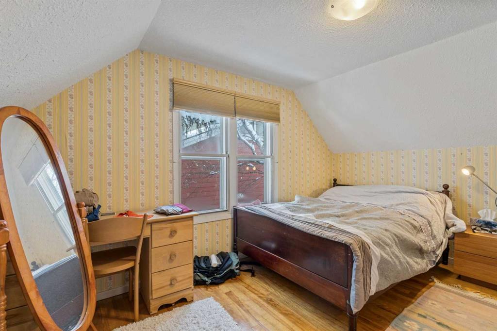 CUTE AND COZY 1 1/2 STOREY HOME ON A 44′ FRONTAGE x 120 LOT! Main and up are 1034 sq/ft. Main floor has a super sunny living room, dining room, an eat in kitchen, office, 4 pce bath, and main floor laundry. The upstairs has 2 bedrooms plus a storage area. Brand new furnace ( Dec 24, 2025 ). There is a double garage. Location! Location! close to Northill Shopping Centre , Sait, Confederation Park, University, easy access to Downtown.