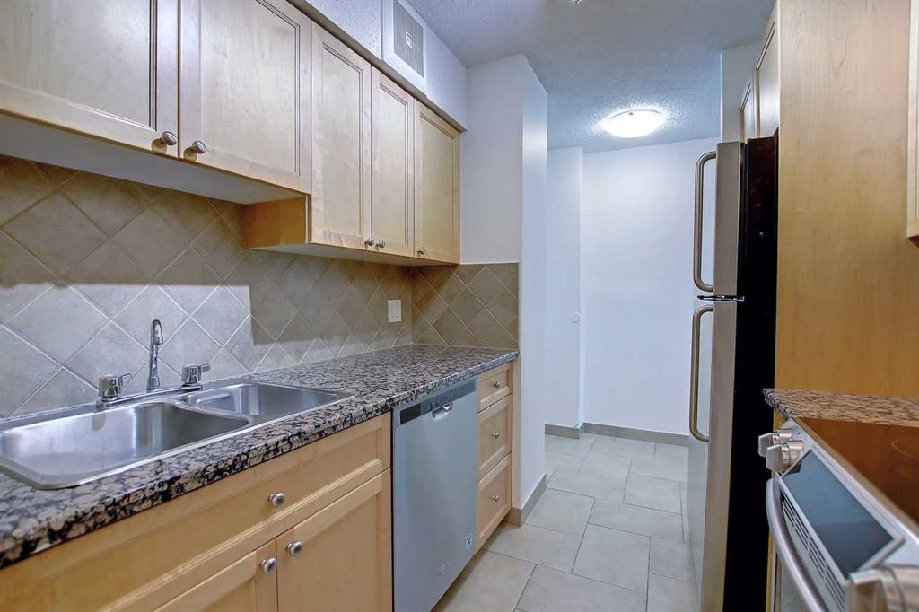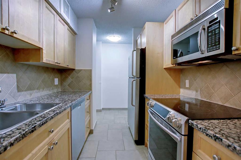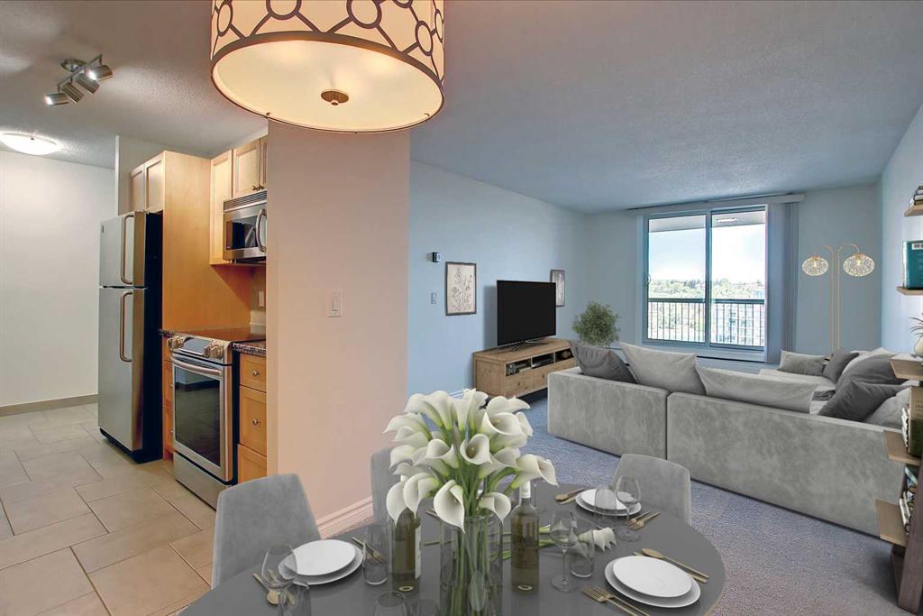 Affordable inner city living in an unbeatable downtown location – just steps to Bow River Pathways, Princes Island Park and numerous downtown restaurants, cafes and shops. Excellent value for young professional or investor. Inside this bright and spacious 2-bedroom unit, you will appreciate the light, neutral palette and generous sized living area leading to the covered North-facing balcony with views to the Peace Bridge and Princes Island Park. The kitchen has granite counters, quality maple cabinets and stainless steel appliances. The main bathroom has a larger vanity with ample storage space plus there is a convenient in-unit storage room and two generous sized bedrooms. You’ll appreciate the secured underground assigned parking stall and the private fitness centre too! Plus you’ll love the handy convenience store, day care and other services right in the building. Condo fees include electricity, heat, water/sewer, parking, use of the fitness centre and more. View the virtual tour and then come see it with your favourite realtor.