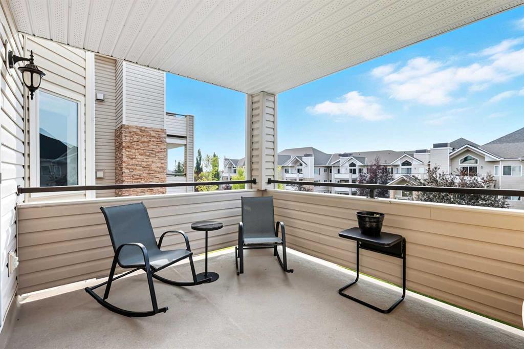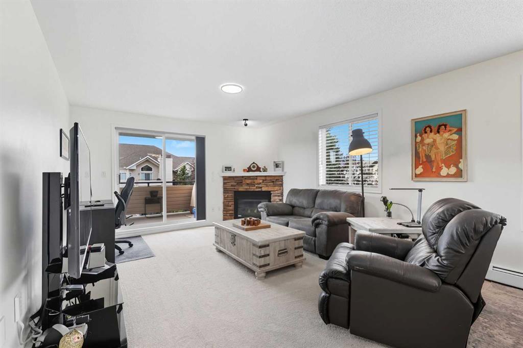 Set in the desirable Springbank area, this corner unit, updated 2-bedroom, 2-bathroom condo delivers an ideal balance of style, comfort, and everyday practicality. Offering over 1,100 sq. ft. of living space, this home has been thoughtfully improved with both recent and past upgrades that ensure it feels fresh, modern, and move-in ready. The spacious, open-concept layout allows for an effortless flow between living, dining, and kitchen spaces. A corner gas fireplace and baseboard heaters create a warm and welcoming atmosphere, while the south-facing balcony draws in abundant natural light. Measuring an impressive 12′ x 9’7″ , the covered balcony is an inviting retreat for outdoor dining or relaxing in the sun. Equipped with a gas BBQ hookup and a storage room, it extends your living space and enhances functionality. The kitchen has seen stylish updates over the past year, including a new countertop, along with a new fridge and microwave range hood fan combo added just last month. Complemented by modern lighting, and a convenient breakfast bar, the kitchen is both practical and appealing. Every room in the unit has been freshly painted, adding to the bright, clean feel. The primary bedroom is a private retreat featuring a walk-in closet and a full ensuite complete with soaker tub and separate shower. The second bedroom is thoughtfully positioned on the opposite side of the unit, offering privacy for guests or family, with a second full bathroom close by. Additional highlights include newer carpeting, updated light fixtures, and fresh details throughout, making the space feel current and well cared for. This property also comes with 2 titled underground parking stalls, an extra storage locker, and access to a secured bike storage room in the parkade. The building itself is well-constructed with a mix of stone and vinyl siding, supported by a durable wood frame, and has been well maintained by a diligent condo board. With quick access to major roadways and the new Ring Road, commuting is straightforward, and the location offers excellent proximity to both city amenities and mountain getaways. This is a fantastic opportunity to own a spacious, upgraded condo in a well-run complex — one that combines convenience, value, and lifestyle. Arrange your showing today and see why this home stands out.