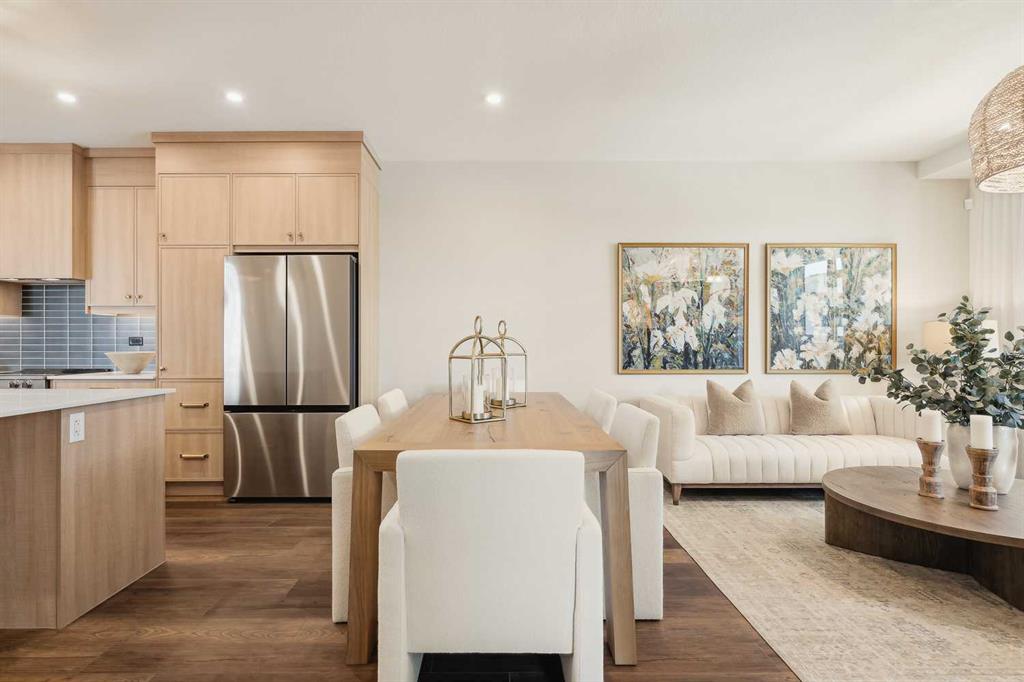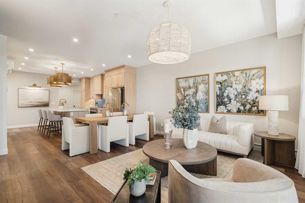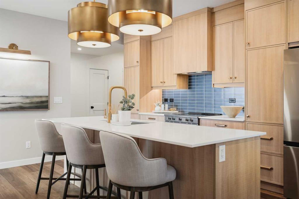 Logel Homes proudly presents the award-winning floor plan, The Atwood 3. Thoughtfully designed with both style and functionality in mind, this professionally curated interior offers premium finishes and modern comfort throughout. Features include air conditioning, 41” upper cabinetry with soft-close doors and drawers, luxury vinyl plank flooring, designer tile accents, stainless steel appliances, and contemporary pot lighting. An expansive 8-foot-wide patio door enhances natural light and indoor-outdoor flow, while a dedicated storage locker and titled parking stall provide everyday convenience.