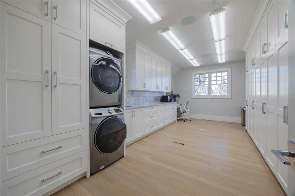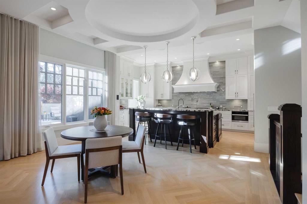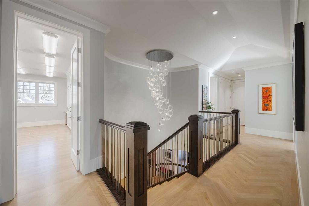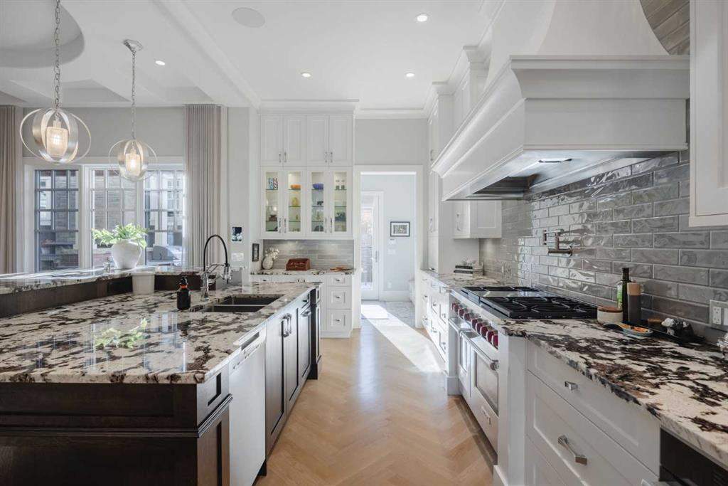 In nearly new condition, this transitional masterpiece in the heart of Mount Royal presents an amazing opportunity for the savvy buyer seeking rare and sought-after features, including an elevator providing seamless access throughout the house and … for the car enthusiast, generously sized garaging for 4 cars (can be upped to 6 w/ the addition of a lift). The main floor is designed for day-to-day living, informal gatherings, and entertaining larger numbers in an elegant setting. The spaces consist of a generous foyer, private office and centre hall that leads to a 40’ wide “great room” with gas fireplace and Nano glass bifold doors leading to an epic outdoor area with covered patio, wood burning fireplace, built-in BBQ & and much more. The large showstopper island kitchen features the “who’s who” of top of the line appliances (Sub-Zero, Wolf, Miele, etc.). The butler’s pantry leads to the separate dining room. Upstairs hosts a spectacular primary bedroom suite with vaulted ceilings, 6-piece bath, and a private south balcony, plus 2 more spacious ensuite bedrooms & a huge laundry/craft room/art studio (originally planned to be a 4th bedroom w/ ensuite). The lower level showcases a large media room with wet bar that accommodates a grand piano with ease – ideal for evenings of fun. It also comprises a gym which can be a (4th or 5th) bedroom, and 3-piece bath w/ steam shower. Exterior features include a significant driveway (great for guest parking), sandstone & red brick, wood tongue & groove eaves, copper troughs & downspouts, and a “morning terrace”. This property provides easy access to the Glencoe Club, multiple parks, a public library, local outdoor pool and community tennis courts. Within easy walking distance, the commercial amenities and services on nearby 14th Street are in the process of regeneration and provide promise of a “High Street” in the making!