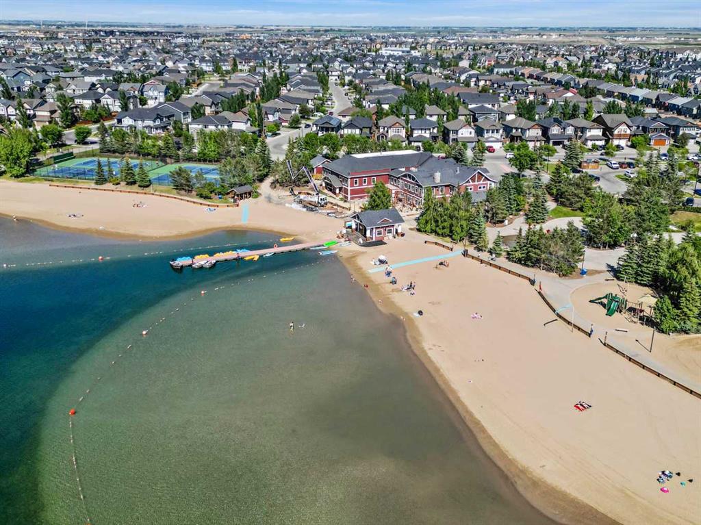 Auburn Rise is a newer built condo building built by Logel Homes in the amazing south-east Calgary community of Auburn Bay. Large size, upgrades and special features make this unit one of the better condos buys available right now. A titled tandem underground parking stall guarantees you can keep two vehicles safe and warm. From there you can either take the very short climb up one flight of stairs directly adjacent to your stall right to this ground floor unit or take the buildings elevator as intended. Situated on the south west corner of the 400 building this home gets plenty of natural light and warmth yet keeps cool inside in the summer with air conditioning already in place. The 958 square foot Atwood plan is well laid out with 9-foot ceilings, an attractive modern color scheme and numerous upgrades at the time of building including LVP flooring and tile throughout the home (no carpets), plumbing fixtures, closet organizers, pot lights, 41-inch upper cabinets, cabinet drawers, upgraded appliances, dual ensuite sinks, pot lights and more totaling over $25,000. More was done after building including all light fixtures and window coverings. The lichen is anchored with a large quartz island which seats 4 comfortably. There is a 25-foot deck for enjoying the outdoors and a newer building which you will be proud to call home. Ample visitor parking right outside this building and a center green space add to the aesthetics of this desirable complex. There are many grocery stores, restaurants and other shopping amenities right in the area within very short walking distance. The 302 BRT bus line stops right outside, biding the time until the green line LRT makes its way down here. You also get access to enjoy the private Auburn Bay Lake year-round recreation area and numerous pathways and green spaces in the community. All this and easy access to both Deerfoot and Stoney Trail to get you where you need to go. Come and see for yourself today!