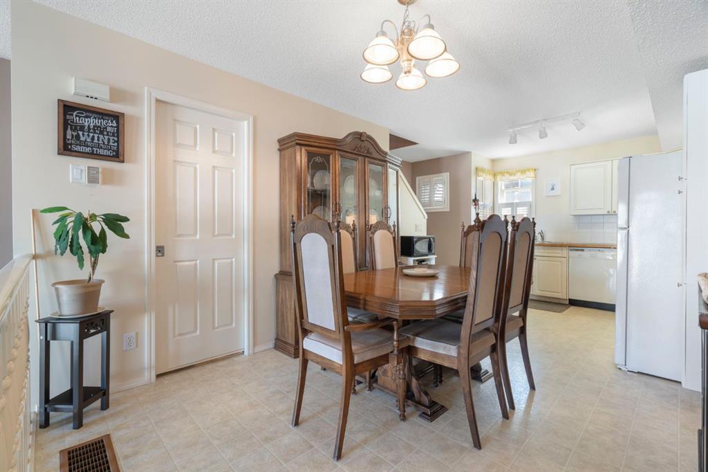 Located in the quiet, well-maintained Wildflower complex in the desirable community of Bridlewood, this 2-bedroom, 1.5-bathroom townhouse features soaring ceilings, an attached single-car garage, and low condo fees. Upon entering, you will find a designated foyer with direct garage access, a large closet, and entry to an undeveloped basement/utility room that provides excellent additional storage. A short flight of stairs leads to a bright living room boasting high ceilings, a large window for ample natural light, a gas fireplace, and access to a balcony. The open-concept kitchen features white cabinetry and matching appliances, situated next to a dining area with plenty of space for hosting. A convenient half-bathroom completes the main floor. The upper level includes a laundry area and a primary retreat large enough for a king-sized bed, featuring a walk-in closet and room for additional furniture. This floor also offers a four-piece bathroom with a large vanity and a spacious secondary bedroom. This unit is steps away from parks and schools, and only a short drive to the amenities of Shawnessy, including the LRT, grocery stores, banks, and restaurants.