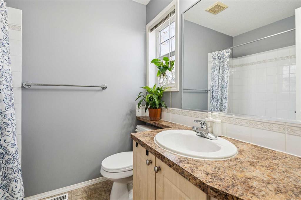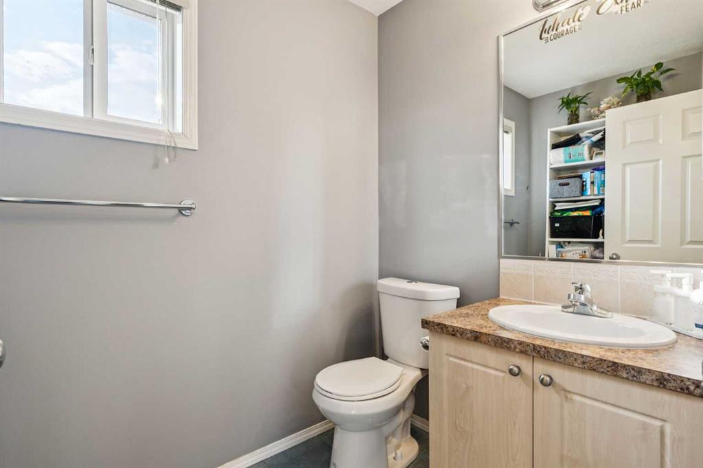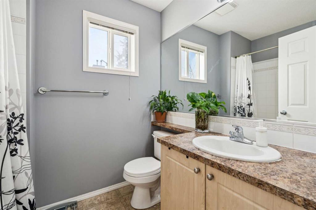 Additional highlights include an attached single-car garage, an extra-long driveway for additional parking, and recent roof replacement. Conveniently located near East Hills Shopping Centre, Tim Hortons, Elliston Park, transit, and with quick access to Stoney Trail, this home offers an excellent balance of space, functionality, and low-maintenance living. Backing onto green space, this property provides added privacy and a peaceful outdoor setting, making it a great opportunity for buyers seeking convenience and comfort.