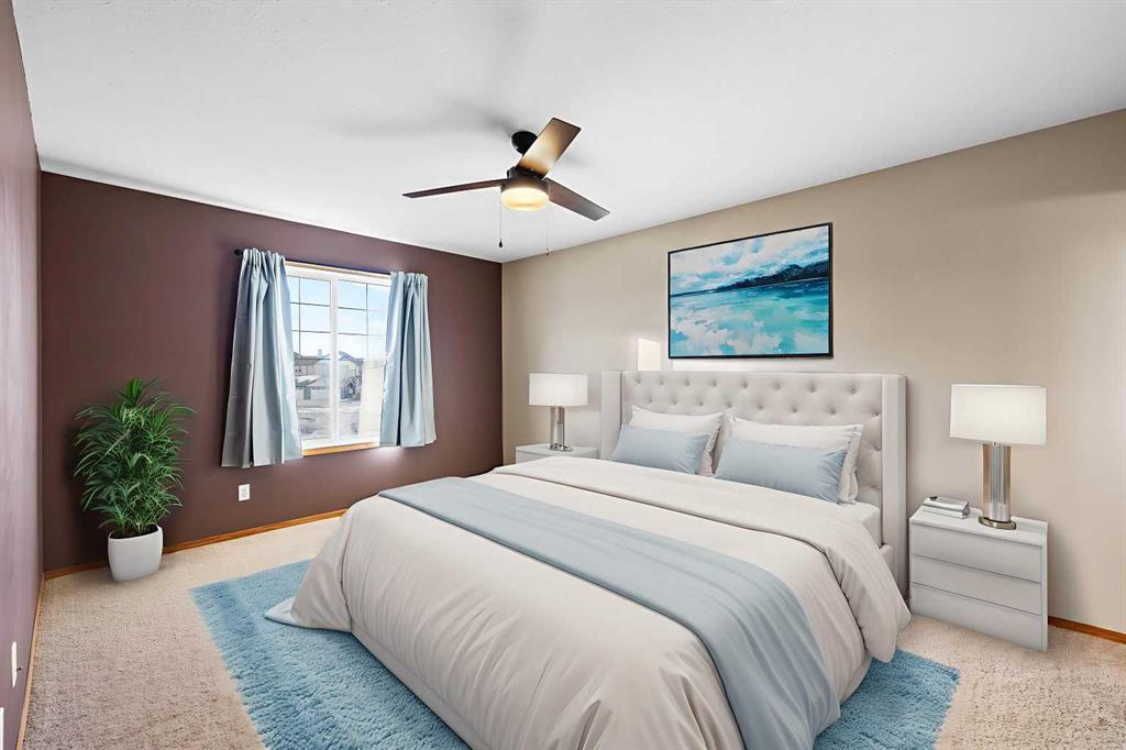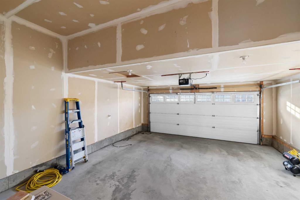 Welcome to Cooper’s Gardens- this beautifully maintained, spacious end-unit townhome offers 2 bedrooms, 2.5 bathrooms, and over 1,450 sq ft of living space, complete with a double attached garage and additional driveway parking. Perfectly positioned on a large corner pie lot in the award-winning community of Coopers Crossing, this home offers a low-maintenance lifestyle with no yard work or snow removal to worry about. Step inside to an inviting open-concept layout featuring 9’ ceilings and an abundance of natural light pouring in through expansive windows. The corner location allows sunshine to fill the home throughout the day, creating a bright and welcoming atmosphere. The chef-inspired kitchen is both stylish and functional, showcasing stainless steel appliances, a breakfast bar island, and a spacious corner pantry, all seamlessly connected to the dining and living areas-ideal for entertaining family and friends. The living room is warm and inviting, centered around a cozy fireplace, with a tasteful blend of hardwood and carpet flooring throughout. Upstairs, you’ll find two generous primary suites, each complete with its own spacious 4-piece ensuite and large walk-in closet-perfect for guests, family, or a shared living arrangement. The unfinished basement features high ceilings, rough-in plumbing, and two large windows, offering excellent potential for future development and your own design ideas. Additional highlights include central air conditioning, a central vacuum system, and a well-managed, pet-friendly complex (with board approval). Enjoy the convenience of being within walking distance to schools, parks, ponds, pathways, and local amenities. With low condo fees, pride of ownership throughout, and an unbeatable location, this home offers exceptional value in one of Airdrie’s most desirable award winning communities .Check it out!