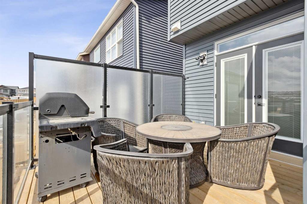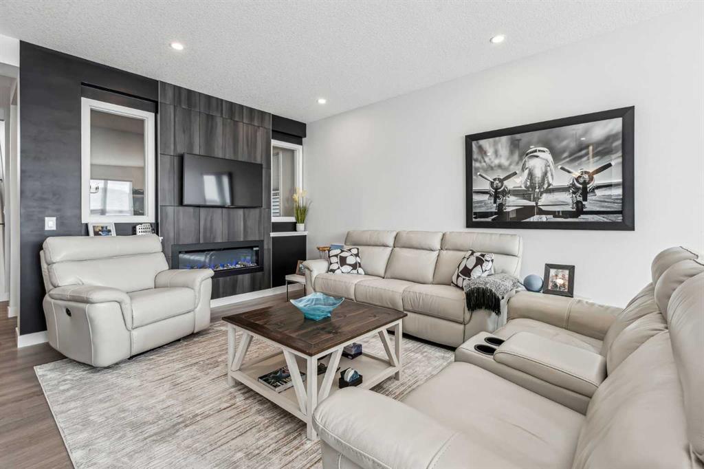 **OPEN HOUSE – Saturday, Feb 7 – 1:00 – 3:00 pm *** Welcome to this exceptional four-level split home in Glacier Ridge, proudly named Calgary’s 2022 BILD Community of the Year. Thoughtfully designed with modern style and everyday livability in mind, this residence showcases high-end builder upgrades, energy-efficient systems, and integrated smart-home technology throughout. The bright, open-concept main floor is filled with natural light from triple-pane windows that enhance comfort and efficiency year-round. The kitchen is a true centrepiece, featuring quartz countertops, premium stainless steel appliances, a large island with seating for four, sleek two-tone cabinetry, and a spacious walk-in pantry. French doors with built-in blinds lead to the rear patio, complete with a gas BBQ hookup. The dining and living spaces flow seamlessly, anchored by a striking two-sided Napoleon electric fireplace—ideal for both entertaining and everyday living. An office nook and stylish two-piece bathroom complete this level. Upstairs, the private primary retreat is introduced through double French doors and offers a generous walk-in closet, elegant Dimplex fireplace, and a spa-inspired ensuite with glass shower, modern fixtures, and dual vanities. The third level features two additional bedrooms, a full bathroom with double vanity, and a versatile family room—providing the perfect balance of connection and separation for busy households. The basement adds outstanding future potential with 9-foot ceilings, egress-sized windows, and bathroom rough-ins, making it ready for additional bedrooms or recreation space. Outside, the home is fully landscaped and fenced, with a front double attached garage offering secure parking and extra storage. Notable upgrades include solar panels for sustainable, cost-saving energy, an on-demand hot water system, smart thermostats, app-controlled lighting, and an Amazon Echo Show—all designed for comfort and convenience. Triple-pane windows further enhance insulation and sound control. Located in the master-planned Glacier Ridge community, inspired by the Rocky Mountains, residents enjoy access to scenic walking paths, green spaces, and future schools, shopping, and recreation. The location also provides quick access to Stoney Trail, Costco, and Creekside Shopping Centre. With its functional layout, upscale finishes, and forward-thinking features, this home truly stands out. Book your private showing today and experience the best of Glacier Ridge living.
