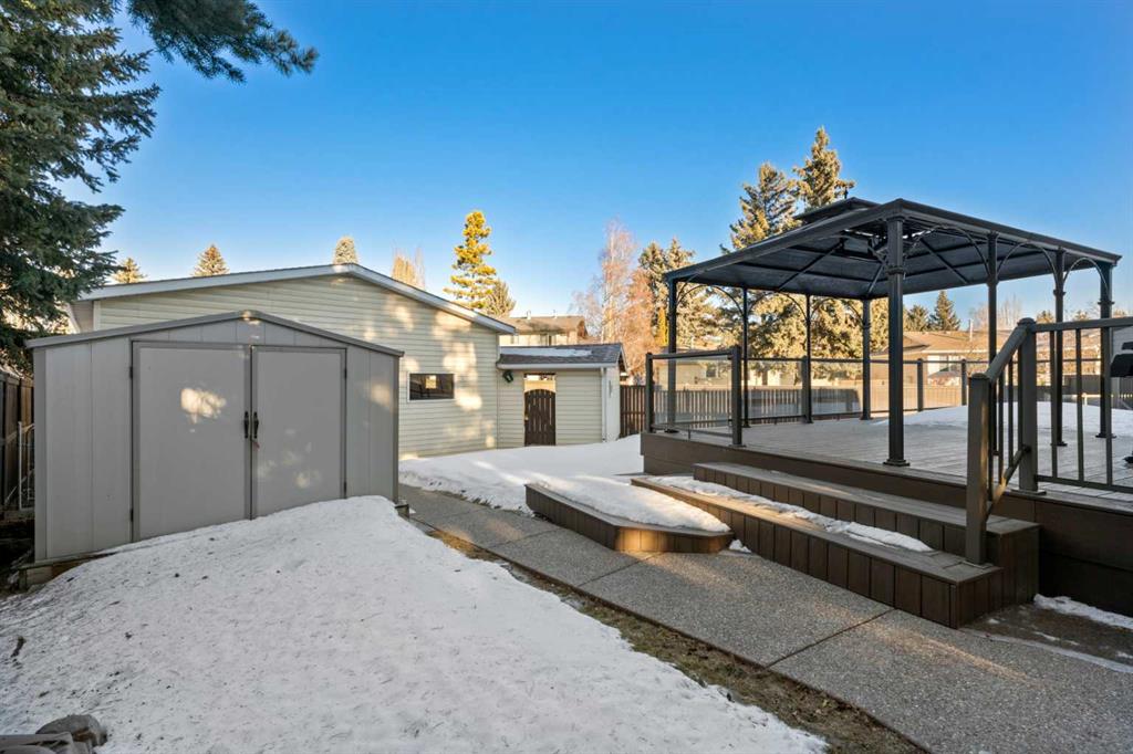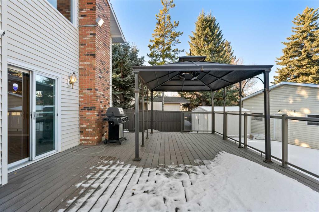 This beautifully maintained home is perfectly situated on a QUIET CUL-DE-SAC, just STEPS FROM FISH CREEK PARK, offering over 2,300sq ft of developed living space. From the moment you arrive, you will notice the pride of ownership and the warm inviting atmosphere throughout. You will discover how this home has been lovingly cared for throughout the years, including newer windows in the living room, dining room, and all upper bedrooms. The main floor features a sun filled living and dining area, updated kitchen with plenty of cabinetry, and sliding doors that open onto a spacious 31’ x 17’ back deck – ideal for morning coffee or relaxed evening entertaining. The LARGE 8,191SQ FT LOT includes a COVERED BBQ area under the oversized gazebo, perfect for year-round grilling. Just a few steps down from the kitchen is the cozy family room, complete with a brick gas fireplace and patio doors leading directly to the backyard. Also, on this level, you’ll find the laundry area, a 3-piece bathroom, and a 5th bedroom or office. Upstairs there are 3 generous sized bedrooms, each with excellent closet space. The primary suite offers a 4-piece ensuite, while a bright main bathroom serves the additional bedrooms. The basement showcases a large recreation room, 5th bedroom and 3-piece bathroom and plenty of storage areas. Additional highlights of this home include an INSULATED OVERSIZED DOUBLE DETACHED GARAGE measuring 27.5’ x 25.4’ x 12 FEET HIGH with built-in cabinets, 2 ELECTRIC OVERHEAD GAZEBO HEATERS, NEW DURADEK, Cement Fire PIT on the lower deck, EXPOSED AGGREGATE PATHWAYS, AIR CONDITIONING and NEW HOT WATER TANK in 2023, DOG RUN, just to name a few. Families will love being just a short walk from both Prince of Wales and Saint Phillips Elementary schools, as well as the Parkland community hall. Residents also enjoy exclusive access to Park 96, a private park for Parkland homeowners, featuring a splash pad, tennis courts, disc, golf, playgrounds, skating rinks, and more. If you have been dreaming of a home that combines location, lifestyle and lasting value, this Parkland gem truly has it all! Book your private showing today.