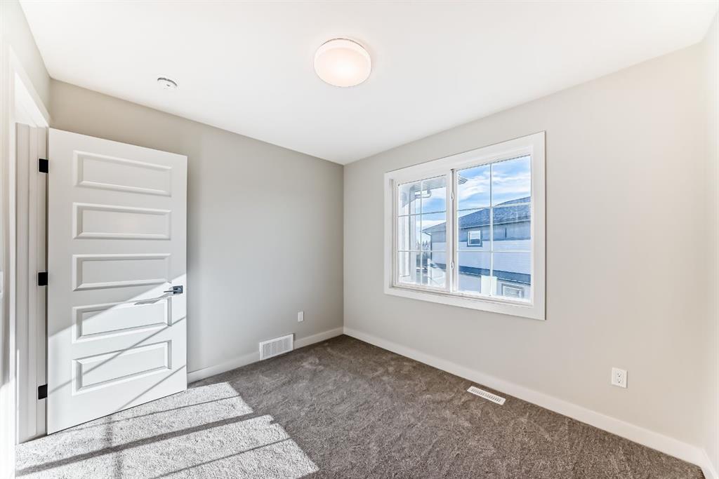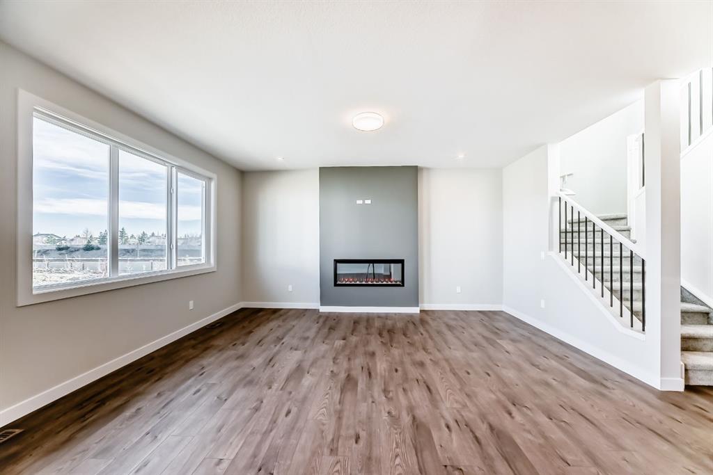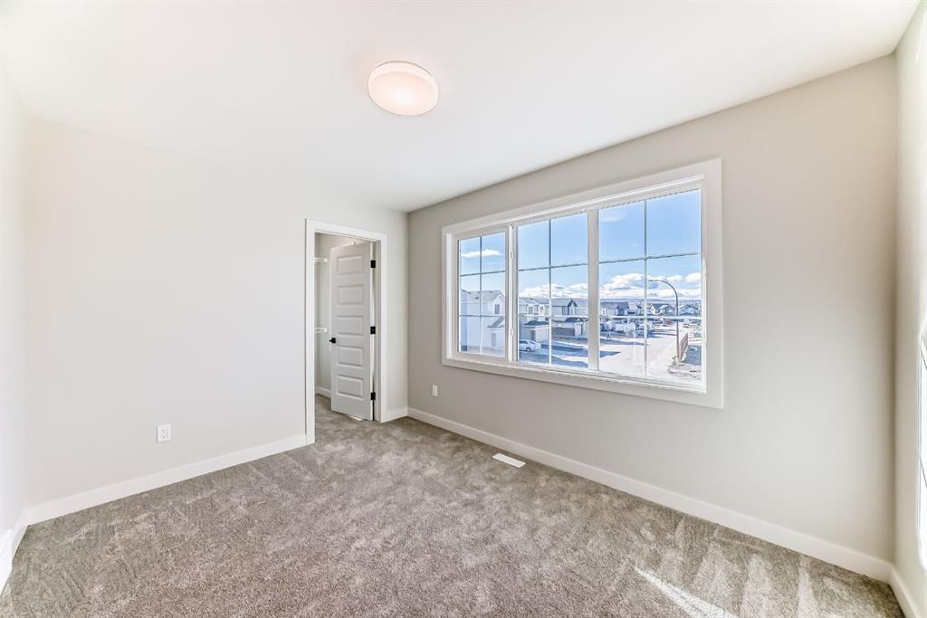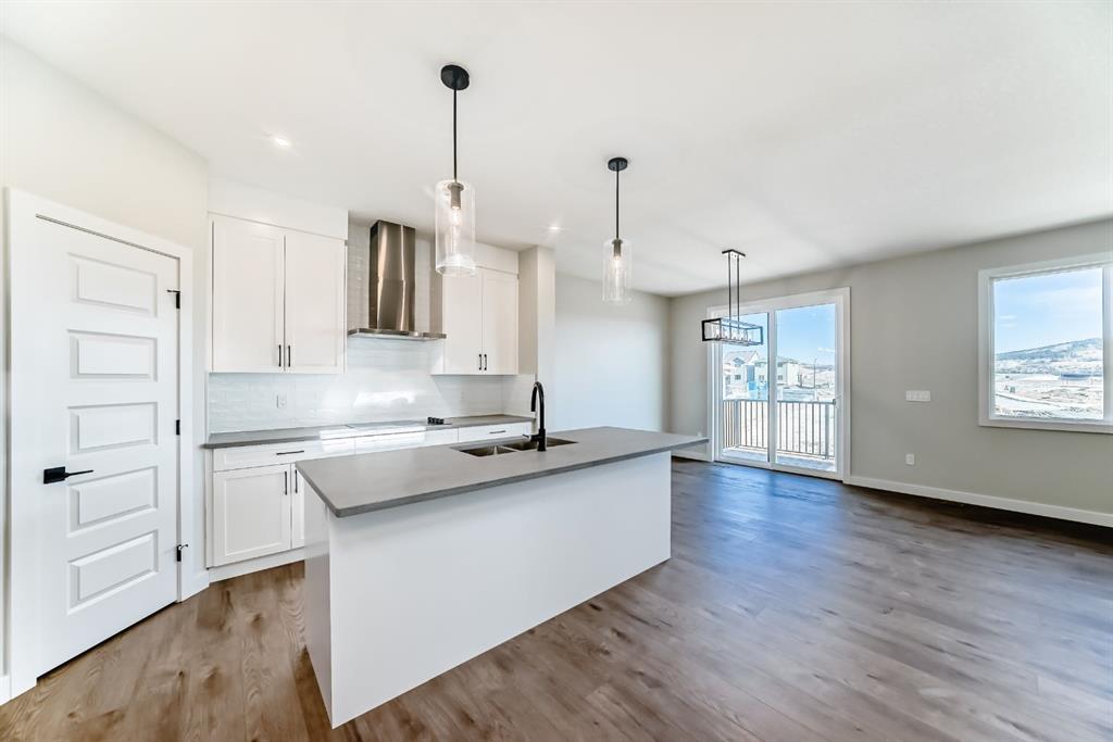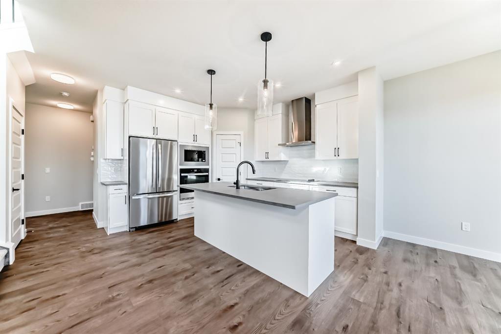 Welcome to The Maverick II by Prominent Homes, a beautifully upgraded 4-bedroom home in the sought-after community of Heartland. With over $20,000 in upgrades and a thoughtfully designed layout offering 2,182 sq. ft. of living space, this home combines functionality, modern style, and comfort for today’s families. Step inside the open-concept main level featuring 9-ft ceilings and a chef’s kitchen complete with ceiling-height cabinetry, built-in Whirlpool appliance package, quartz countertops, and an open concept living room with electric fireplace – perfect for entertaining or daily living. The spacious dining area opens through your 8′ glass patio door onto an 8′ x 12′ wood deck and enjoy added privacy from the pathway-backing, pie-shaped lot. Upstairs, you’ll find a bonus room, four well-appointed bedrooms, and a stunning 5-piece ensuite in the primary suite featuring a glass-enclosed shower and deep soaker tub. Two of the secondary bedrooms also include walk-in closets, providing ample storage. Additional features include a sunshine basement with 9-ft ceilings, a built-in mudroom bench, Whirlpool washer and dryer, and high end finishes throughout. With pathways off the south side of your home you have easy access to the new Dog Park, playground and local amenities. Heartland offers small-town charm with unbeatable access to both the Rocky Mountains and the City of Calgary. Don’t miss your opportunity to own this stunning new home—Ready for Immediate Possession!