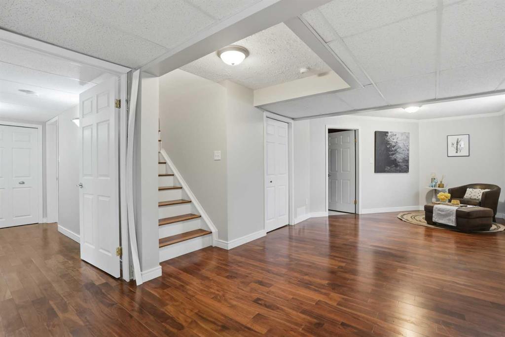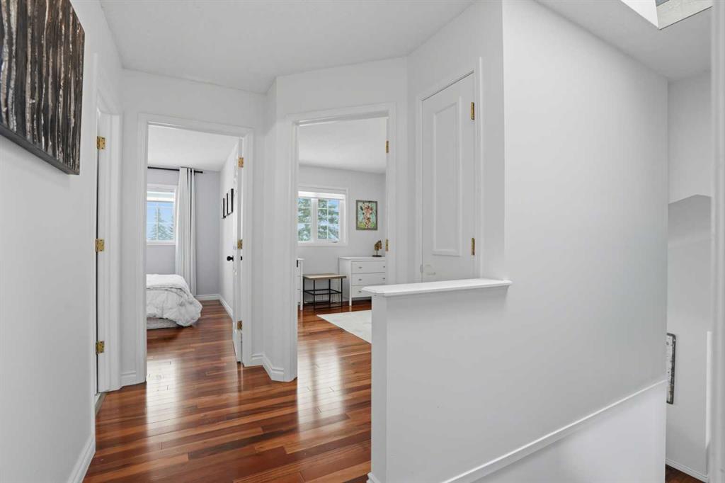 This 2 storey split offers a layout that flows effortlessly. The front entrance opens into a bright and airy living space, where vaulted ceilings and large windows bring in tons of natural light, highlighting the rich tigerwood flooring. Just off the living room, the dining area creates a great space to host. The kitchen is the heart of the home featuring a large island with granite countertops, stainless steel appliances, a corner pantry, and plenty of cabinet space, the breakfast nook looks out over the backyard with easy access to the deck perfect for summer BBQs. Upstairs, you’ll find two well sized bedrooms with ample closet space, along with an updated 4 piece bathroom finished with modern tile and quartz. The primary bedroom feels like a true retreat, offering lots of space, a walk-in closet, and a private ensuite with clean, contemporary finishes. The fully finished basement adds even more versatility, with a large rec space that can be used for movie nights, a home gym, or a play area. There’s also a generous fourth bedroom and another full bathroom with heated tile floors great for guests or growing families. The furnace was replaced just 3 years ago, giving you added comfort and peace of mind. The backyard is truly something special spacious and surrounded by mature trees, it feels like your own private escape. A home that truly checks all the boxes come see it for yourself.